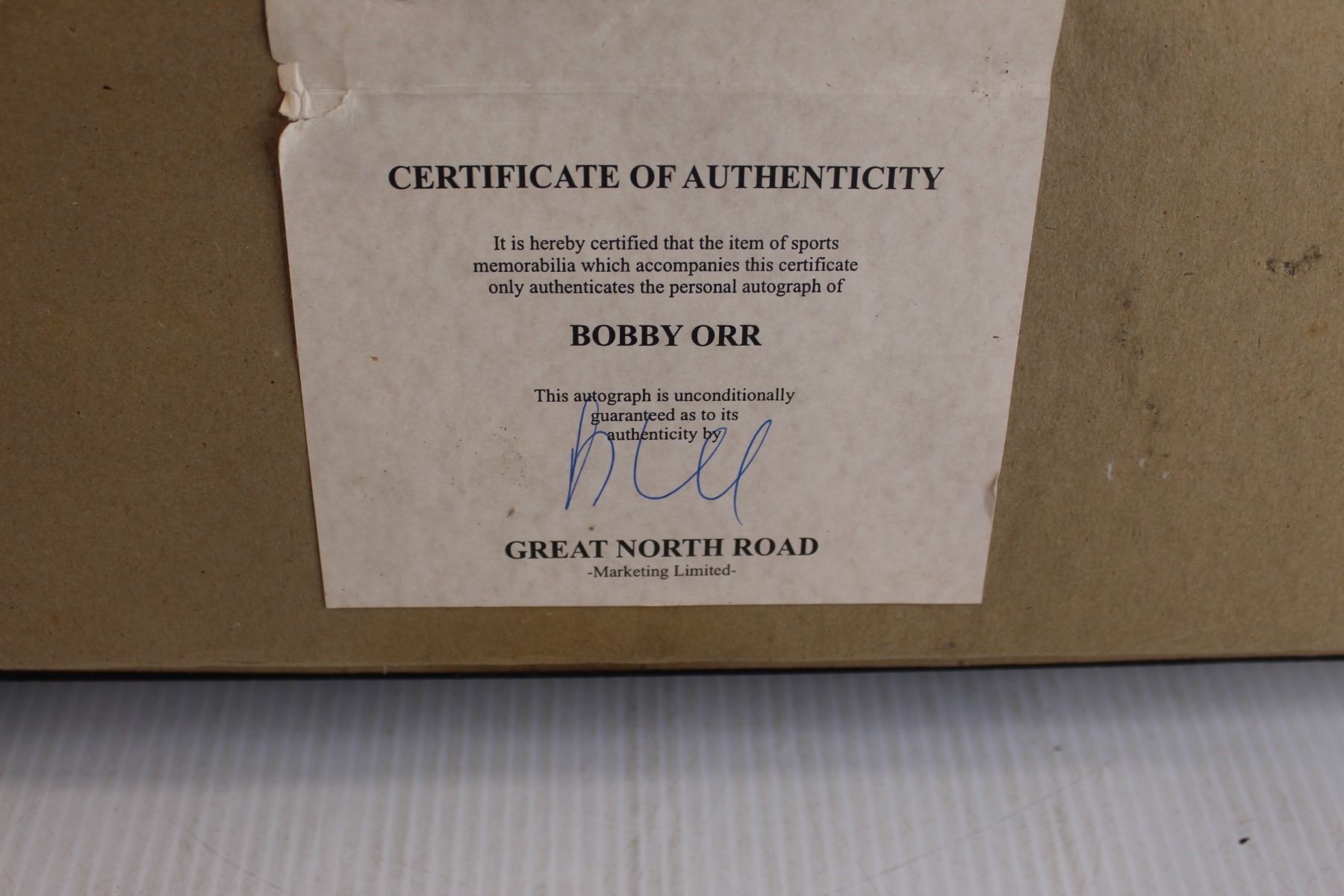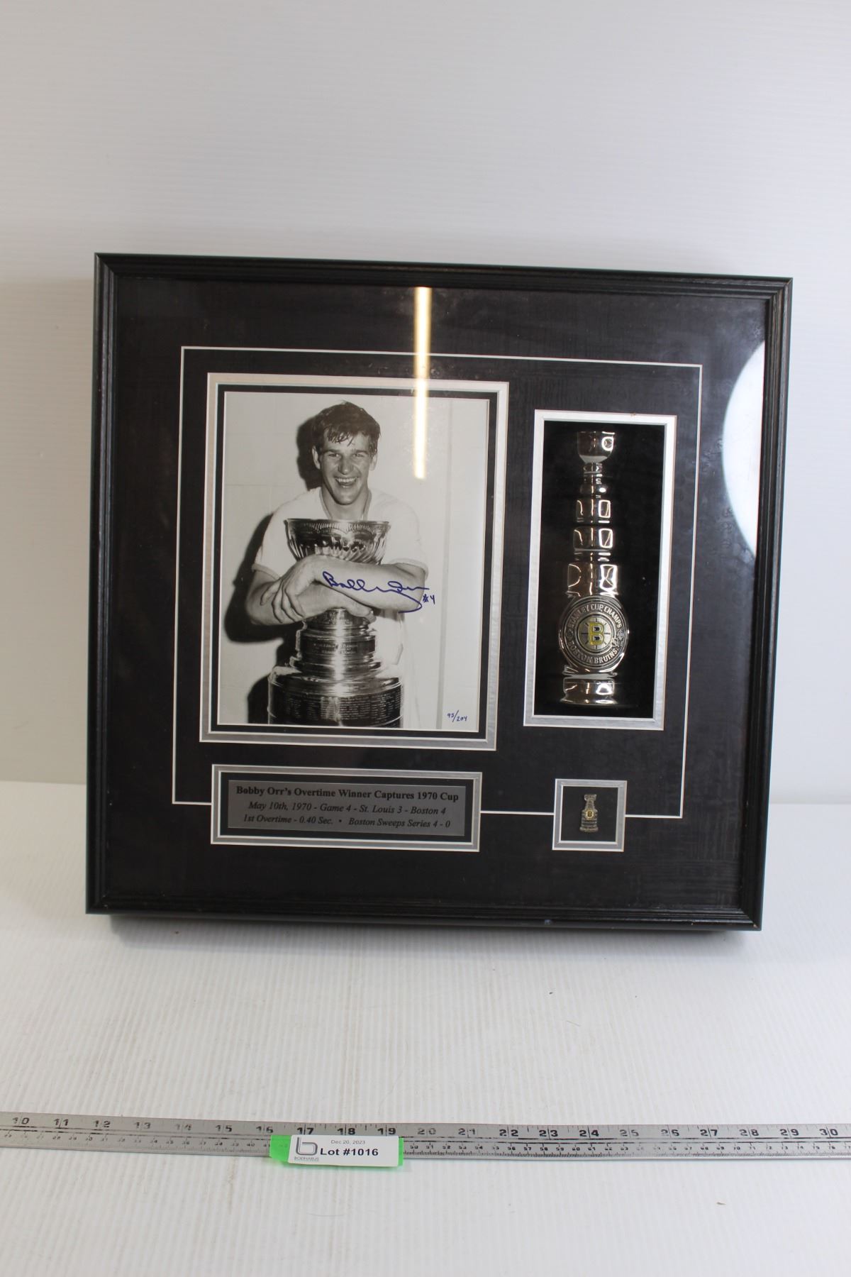 Bobby Orr Framed and Signed Picture with Mini 1970 Cup and Certificate of Authenticity - 3 1/2" x 19 3/4" x 19 1/4"