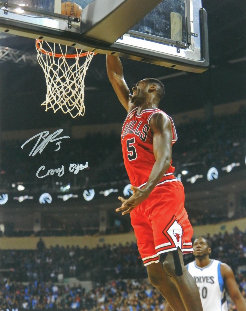 Bobby Portis signed Chicago Bulls action dunk 16x20 photo with 'Crazy Eyes' inscription. Item comes with a Schwartz Sports Memorabilia tamper-proof numbered hologram and Certificate of Authenticity which can be verified online.