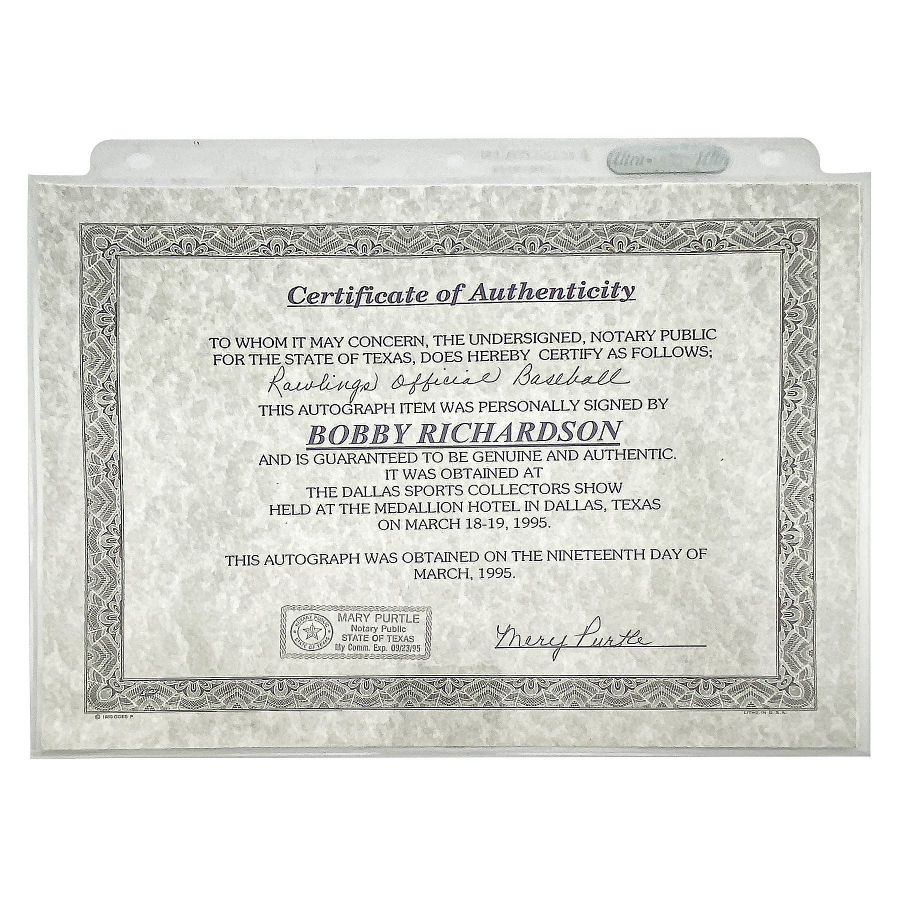 Bobby Richardson Signed Baseball W.S. MVP w/ Cert