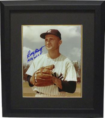 Bobby Shantz was a Major League Baseball pitcher for the Philadelphia Athletics (1949-1954), Kansas City Athletics (1955-1956), New York Yankees (1957-1960), Pittsburgh Pirates (1961), Houston Colt .45's (1962), St. Louis Cardinals (1962-1964), Chicago Cubs (1964), and the Philadelphia Phillies (1964). He enjoyed his best season in 1952 when he led the American League in wins (24) and won the MVP Award. A highly skilled fielder, Shantz won eight consecutive Gold Glove Awards from 1957 to 1964 and won a World Series with the New York Yankees in 1958. Bobby Shantz has hand signed this New York Yankees 8x10 Photo with 1958 WSC (World Series Champs) inscription. Certificate of Authenticity from Athlon Sports. Custom Black Mat and Premium Black Frame as shown.