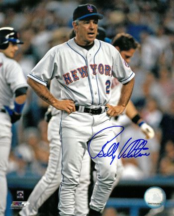 Bobby Valentine was promoted to manager of the Mets with 31 games left in the 1996 season. Over the next two seasons, with Valentine at the helm, the Mets began a resurgence, finishing 14 games over .500 (88–74) both years. Valentine's most memorable game as a manager occurred on June 9, 1999. In the 12th inning of a 14 inning marathon with the Toronto Blue Jays, Mike Piazza was called for catcher's interference on Craig Grebeck. Valentine was ejected by home plate umpire Randy Marsh for arguing the call, and returned to the dugout an inning later in a disguise (a fake moustache). Bobby Valentine has hand signed this New York Mets 8x10 Photo. Certificate of Authenticity from Athlon Sports.