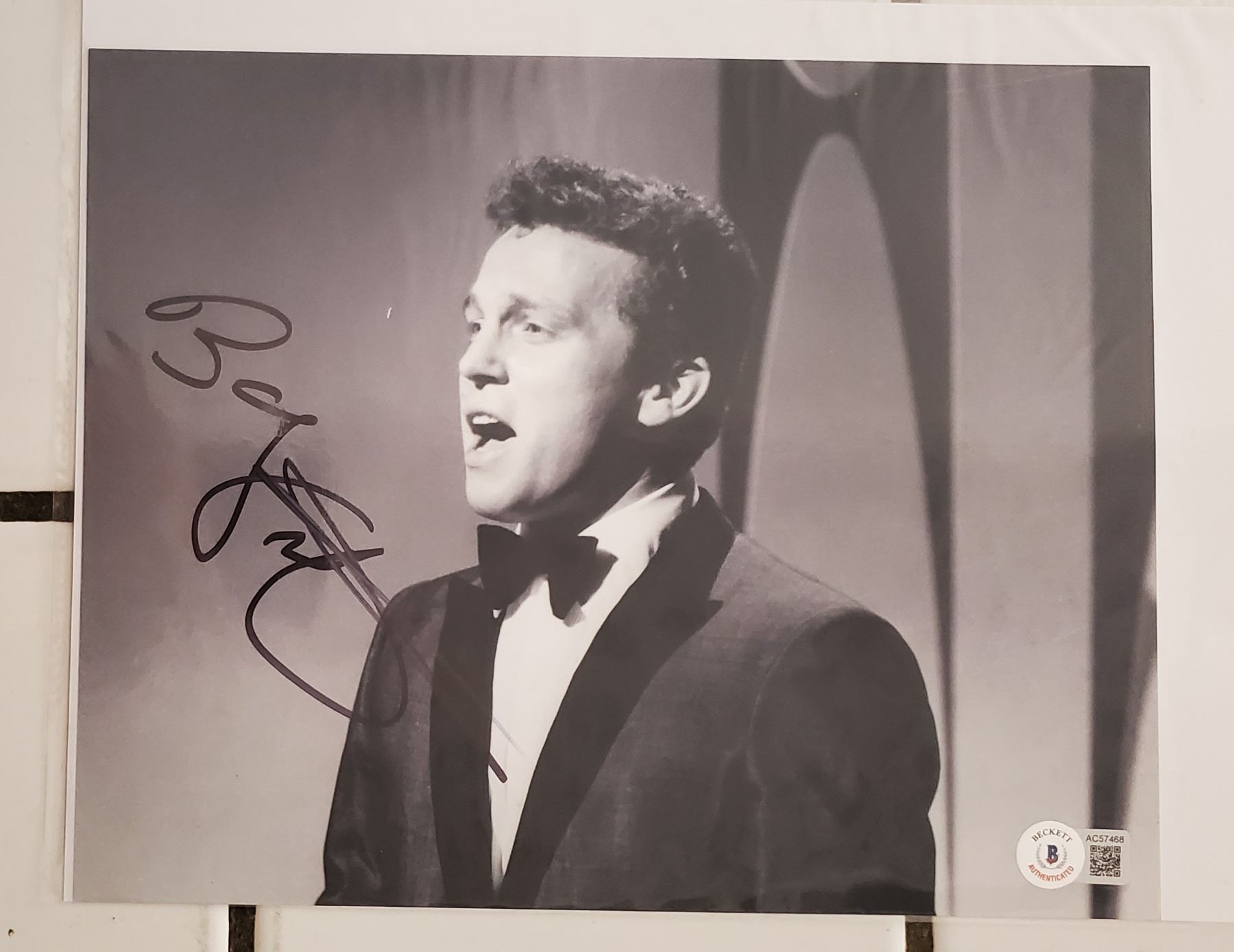 An 8” x 10” photograph signed by Bobby Vinton. Beckett authenticated the autograph, providing a COA numbered AC57468 (sticker only).
