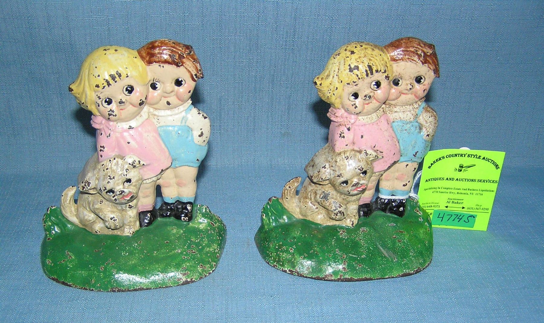 Bobby and Dolly Blake cast iron and hand painted bookends circa 1930s by Hubley number 498 made in the USA est. value $350.00-$400.00