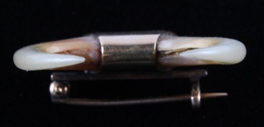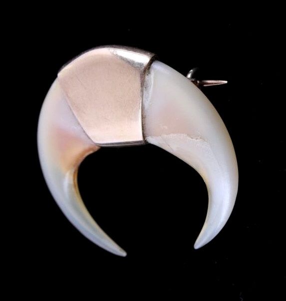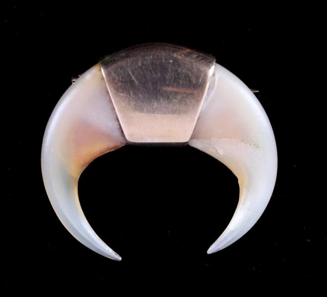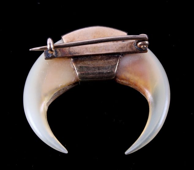 The lot features original Montana taken Bobcat claws set on a 10kt gold broach or pin. The piece is not marked 10kt gold, but was tested to be so. This is an early piece in good condition. Measures 1 1/8"x1 1/8"