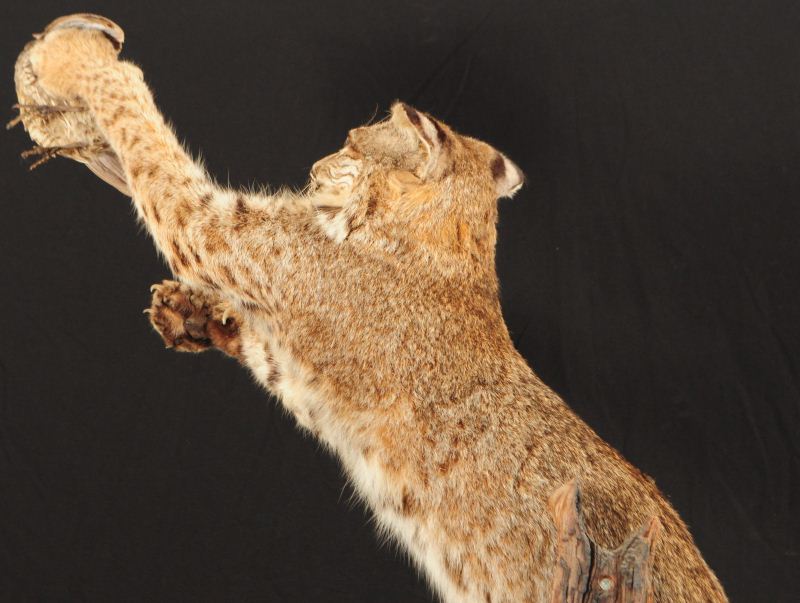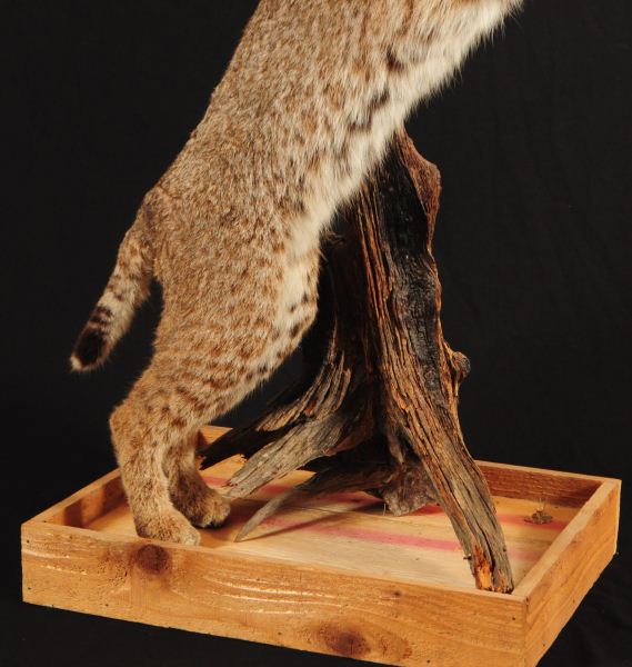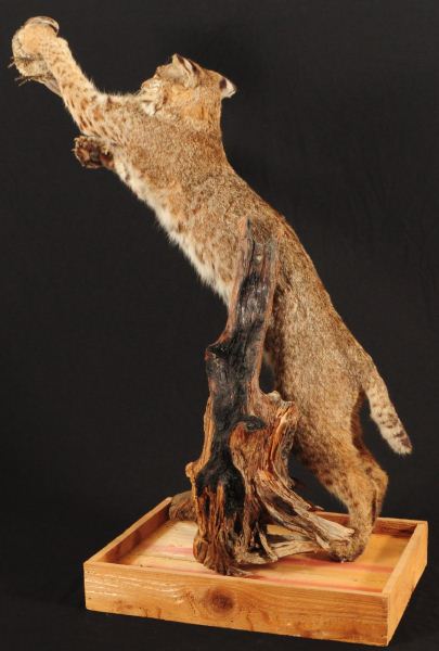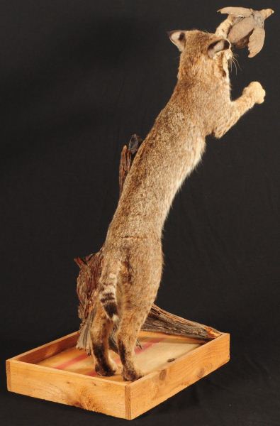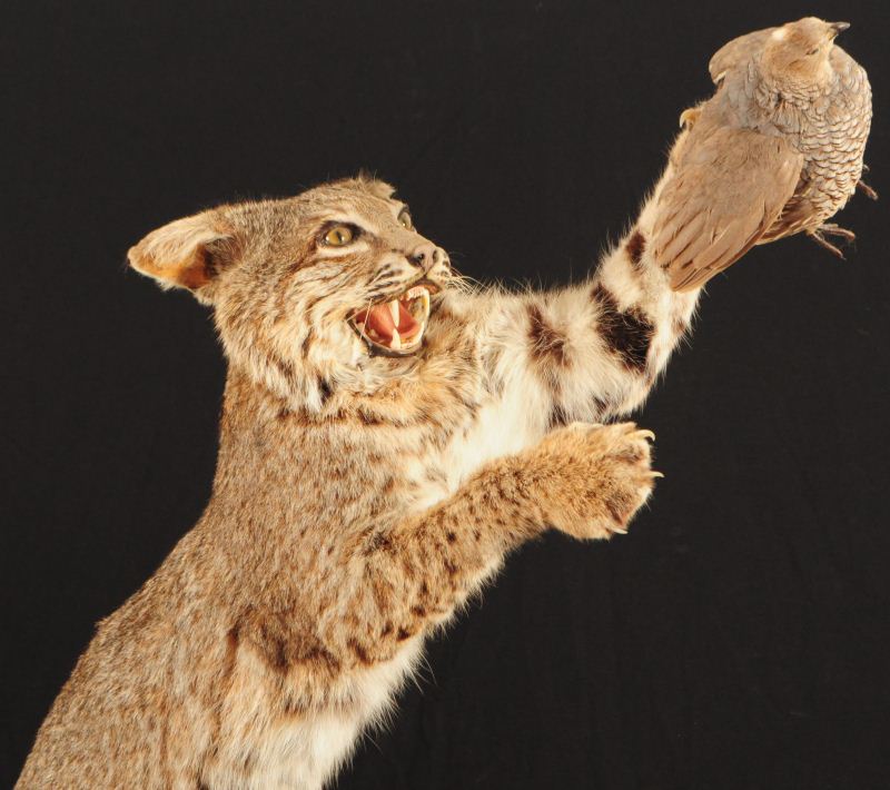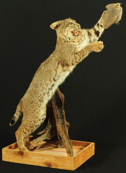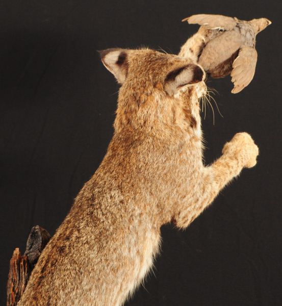 Full Body Bobcat Catching Quail Mount, Measures 41" Tall