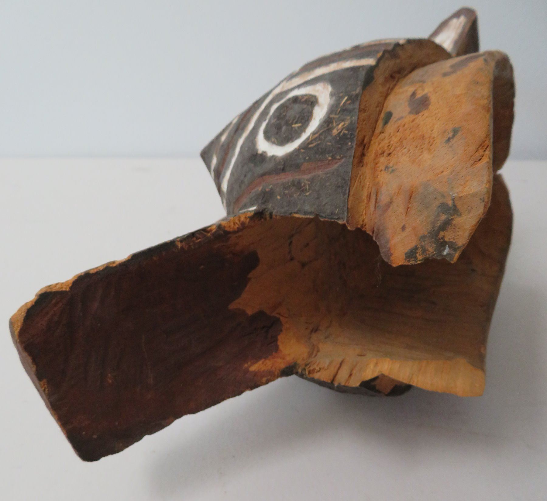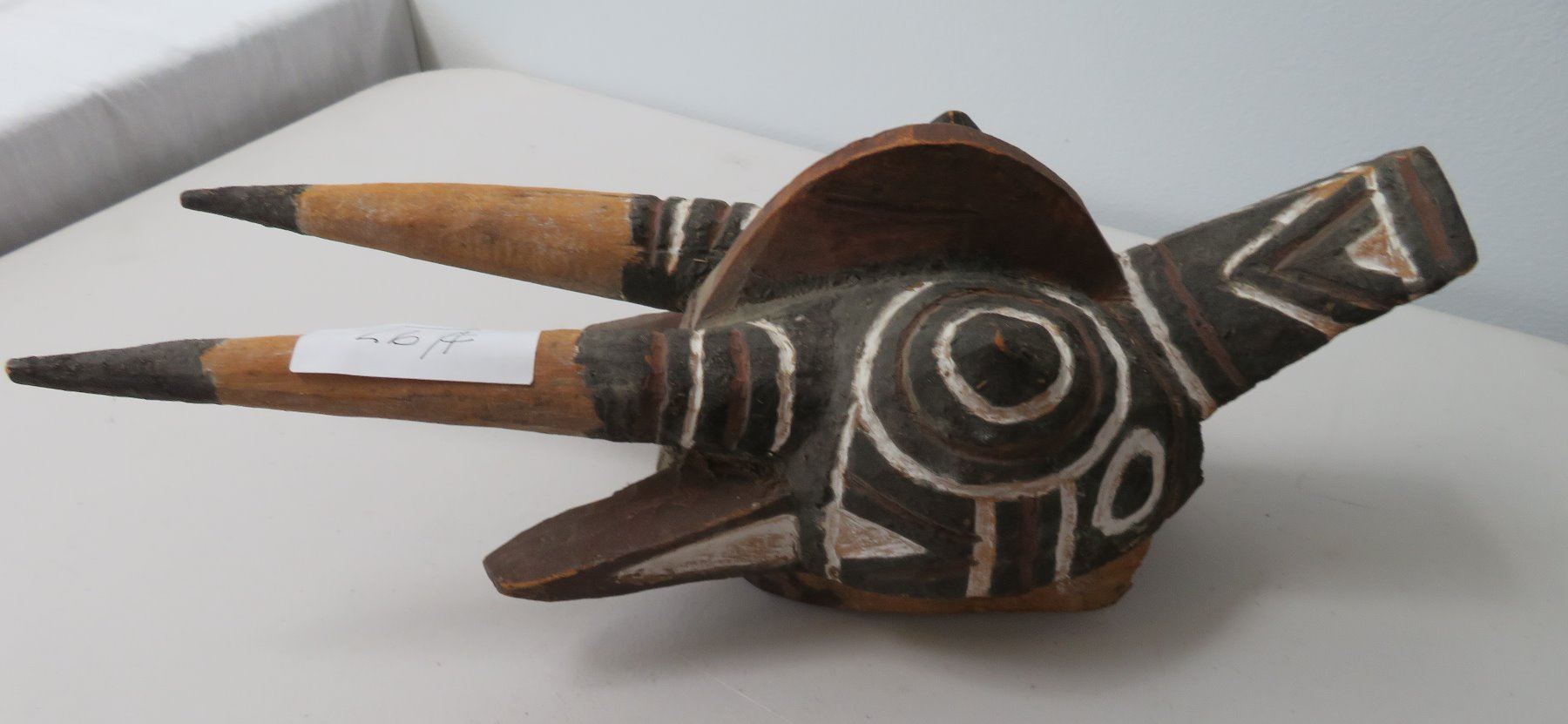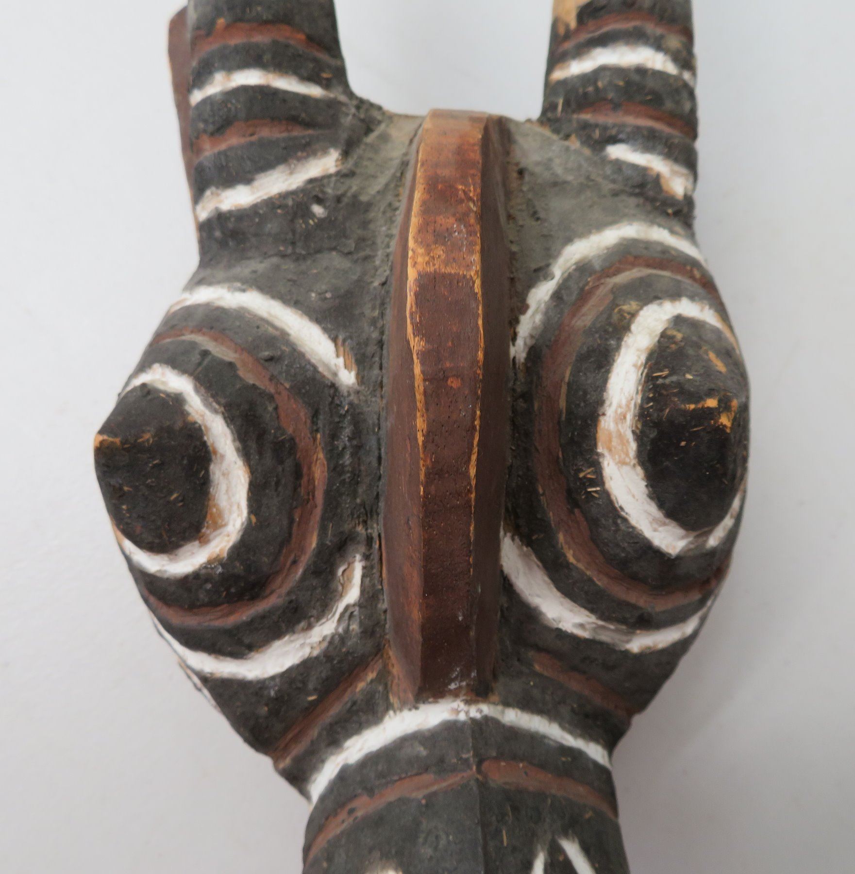 Bobo African Wood Mask, c. 1900. Made of wood, the item measures 17" x 6" x 6". North Africa. Condition: Large piece broken off near bottom, see images. Shipping: $37.50 USA estimate only, w/insurance and signature, due to size and weight.