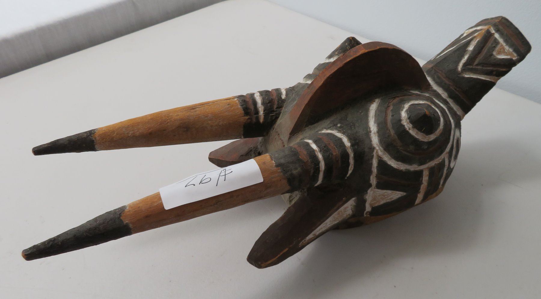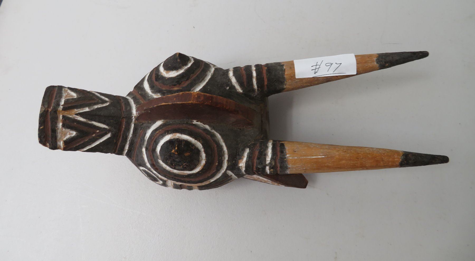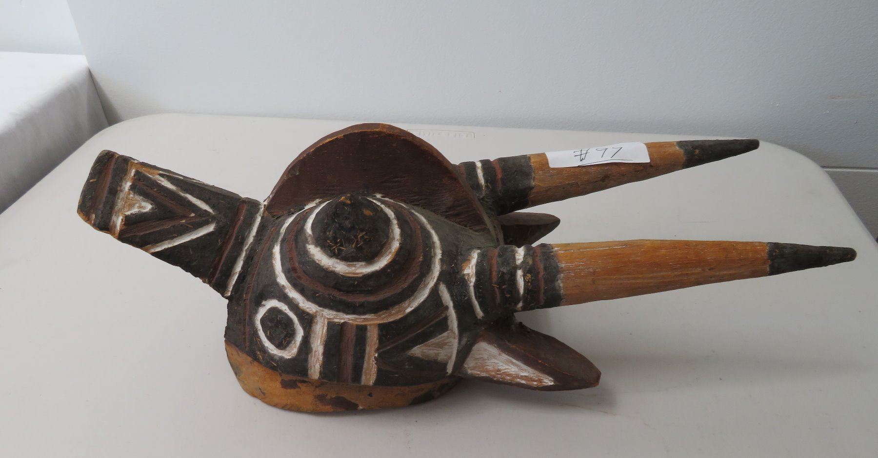 Bobo African Wood Mask, c. 1900. Made of wood, the item measures 17" x 6" x 6". North Africa. Condition: Large piece broken off near bottom, see images. Shipping: $37.50 USA estimate only, w/insurance and signature, due to size and weight.