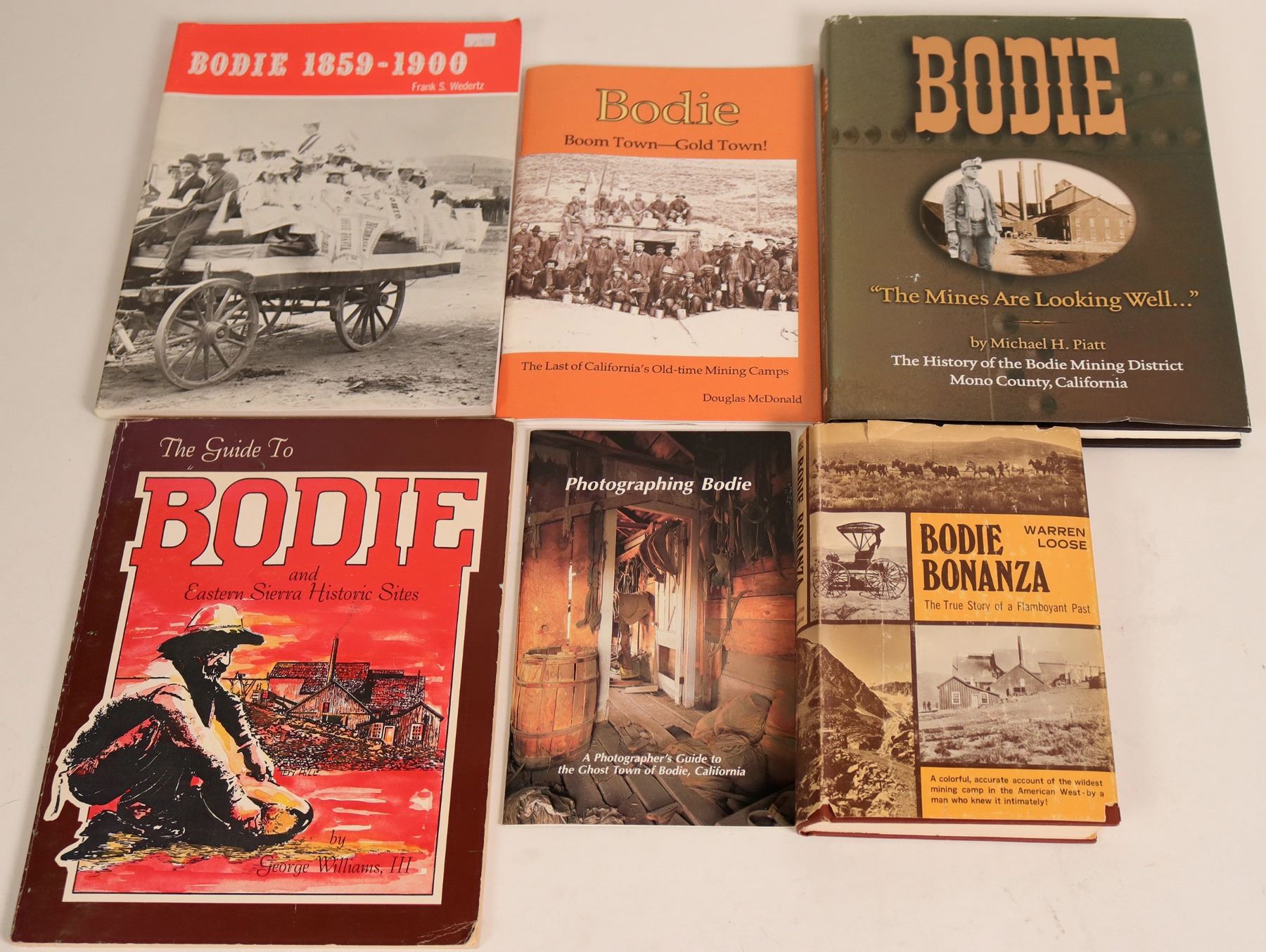 Lot of 6. Included: Photographing Bodie, Morse, 1990 sc; Bodie Bonanza, Loose, 1971, hc with dj; Bodie: Boom Town--Gold Town, McDonald, 1988 sc; The Guide to Bodie, Williams, 1981 sc; Bodie: 1859-1900, Wedertz, 1996 sc; and Bodie: The Mines Are Looking Well, Piatt, 2003 hc with dj.
