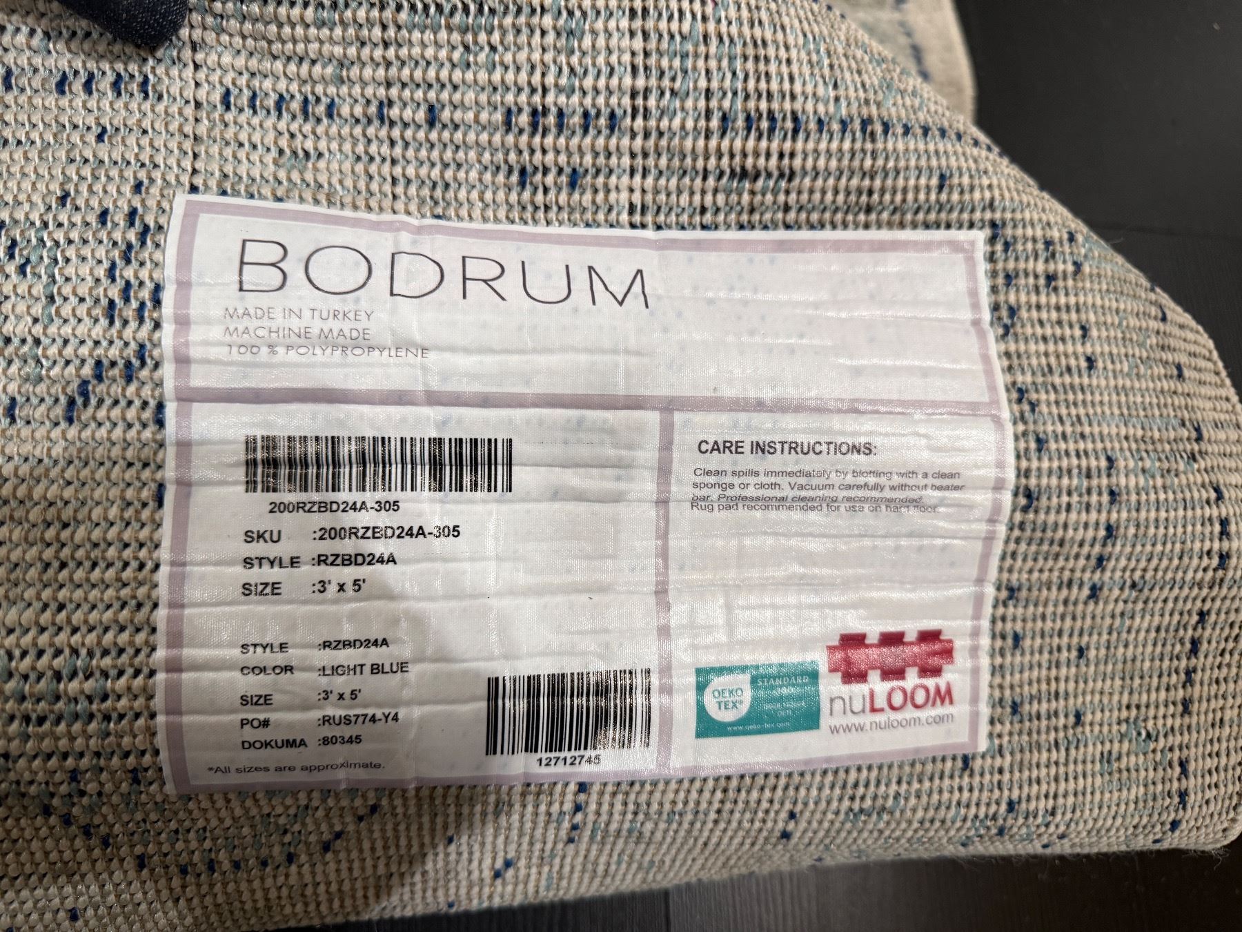 Bodrum Light Blue Turkish Rug - Approx 36in x 60in