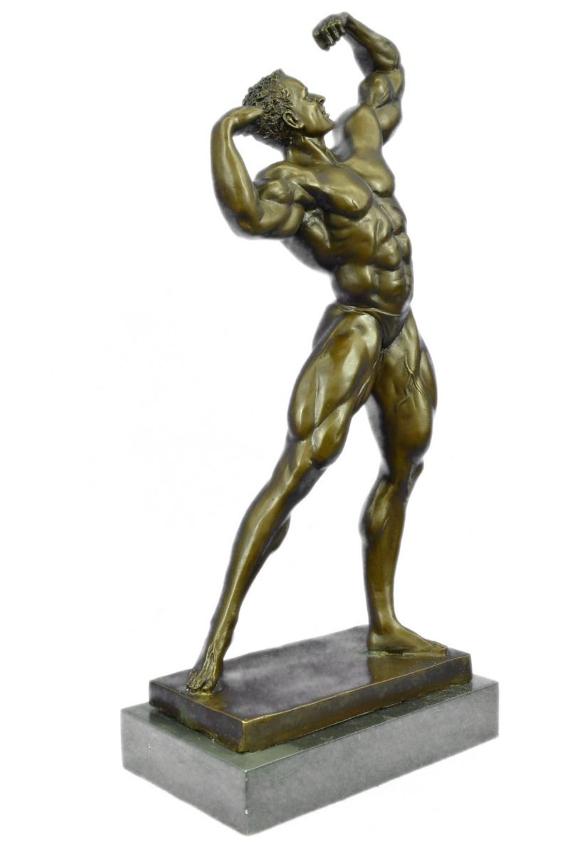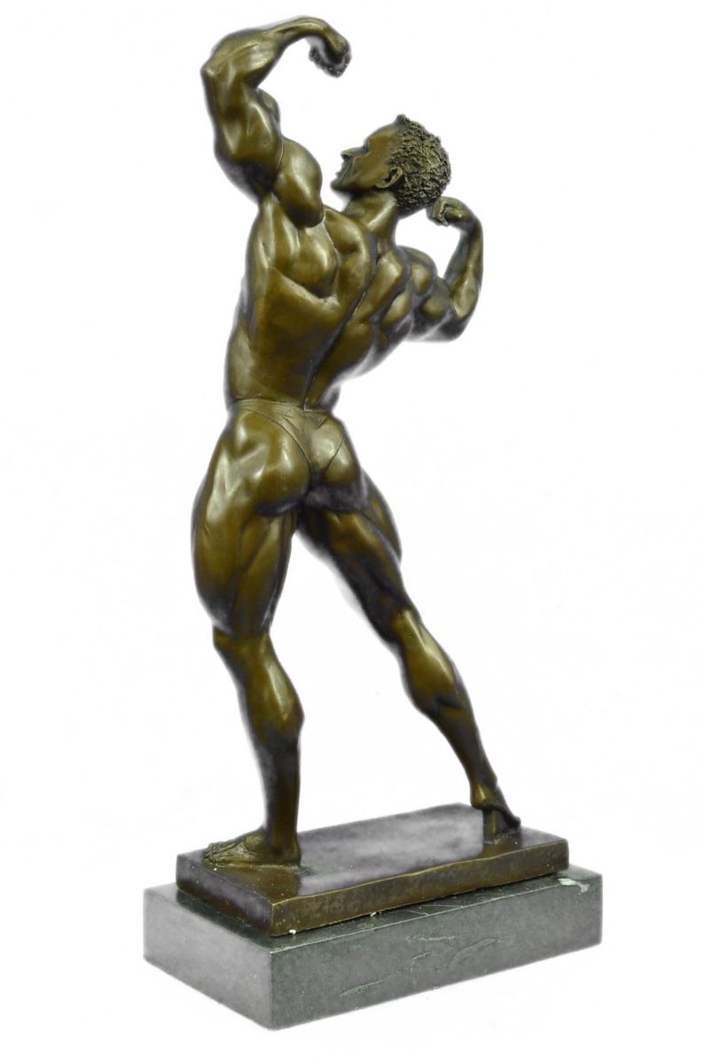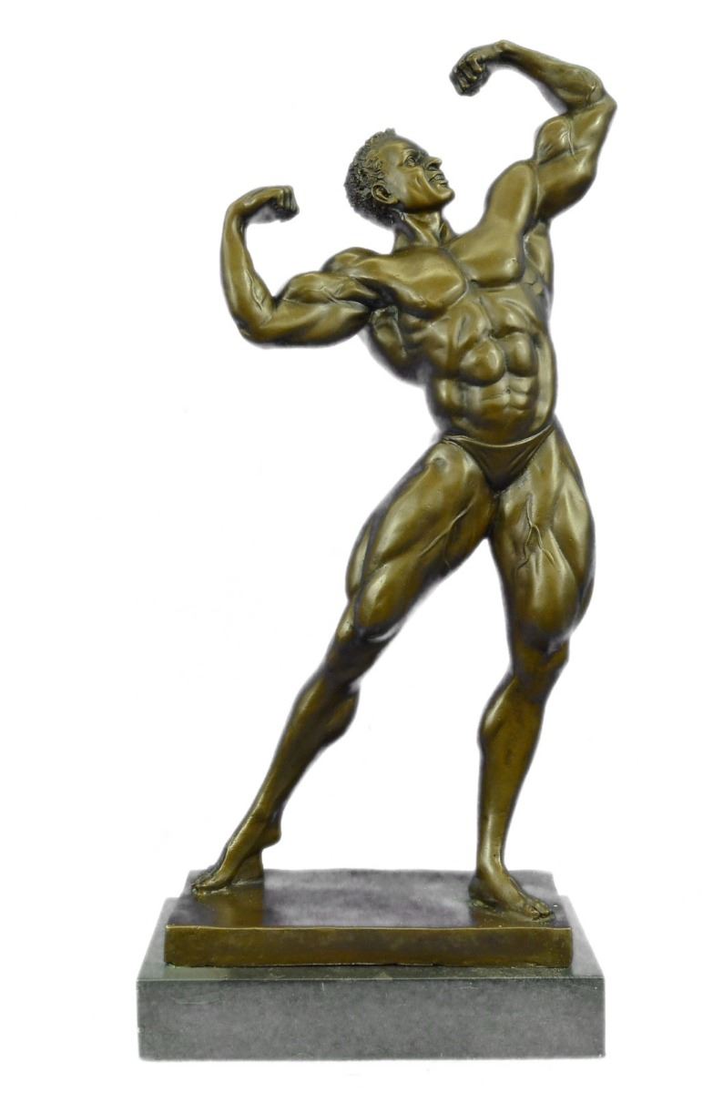 Bronze Iron Man Statue. An Intricately Crafted Piece Is Of A Strong Man Confidently Placing Is Hands On Hips. Each Curvature Of His Muscles Are Clearly Defined. This Man Has Dedicated Countless Hours To Physical Fitness. Athletes, Iron Men, And Fitness Buffs Will Enjoy This Symbol Of Hard Work. This Original Piece Was Created Using The Lost Wax Method. It Is Signed By American Artist Kauba And Set On A Black Marble Base. Bronze Dimensions With Marble Base:Height 21" X Width 10" Marble Dimensions: 9" X 5.5" Height Without Base: 20" Weight : 20 Lbs.