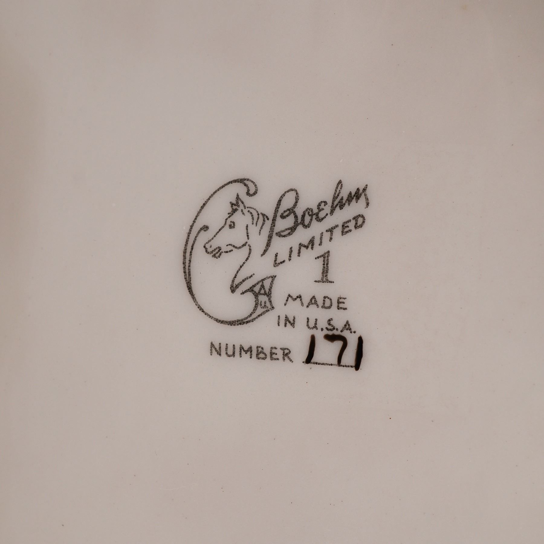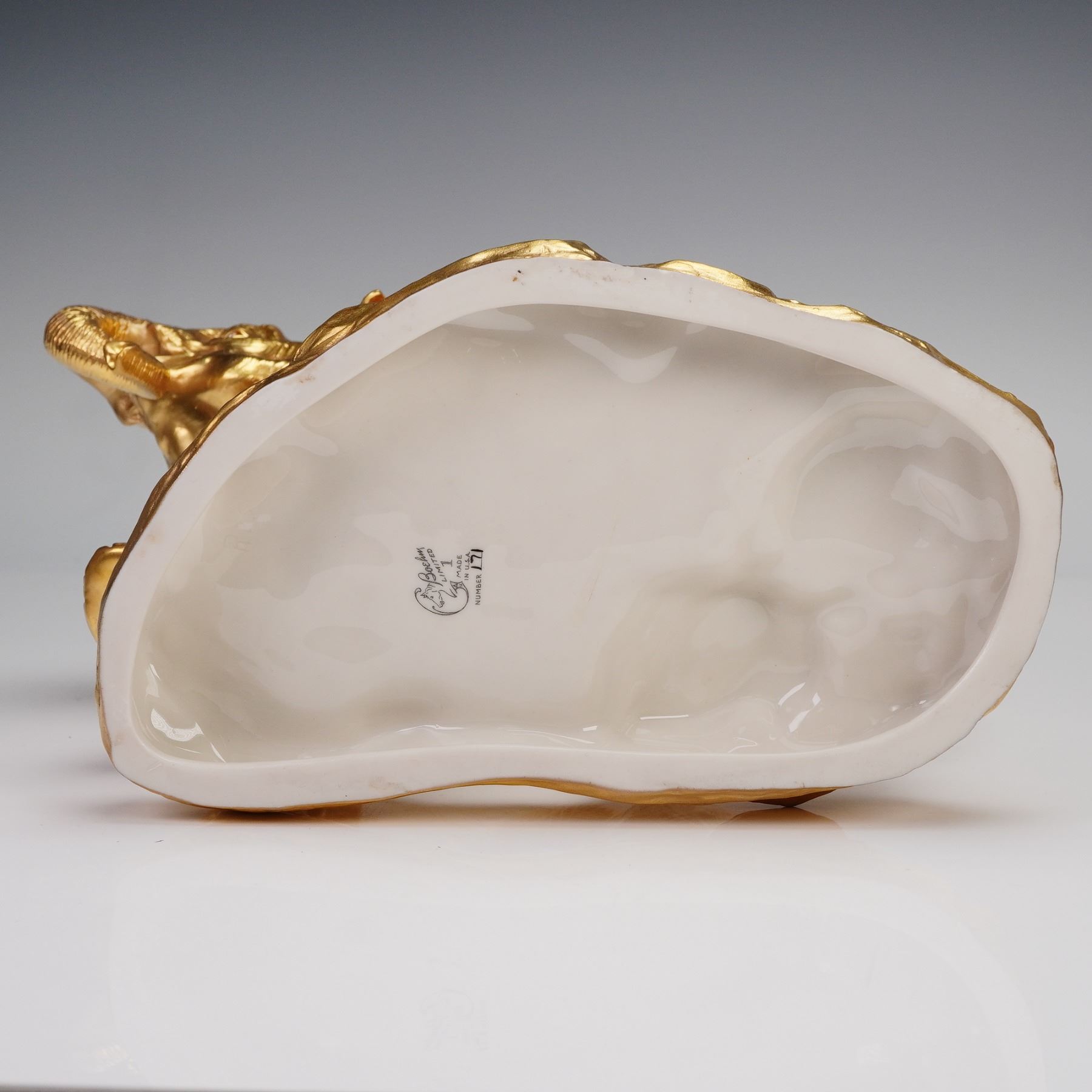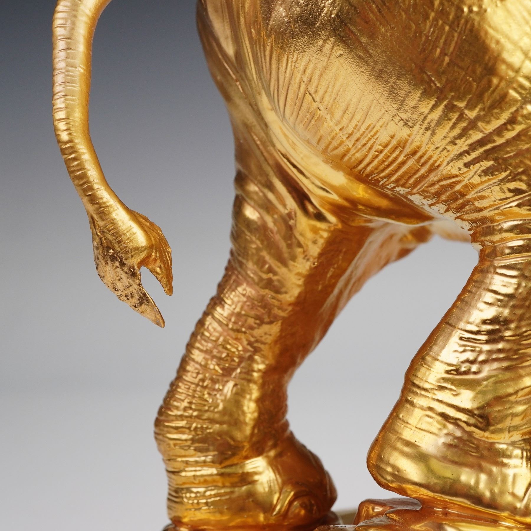 A limited edition, numbered 171, porcelain elephant embellished with 1/10 ct diamond eyes and fired with 24k gold. Depicts a highly detailed elephant in a playful posture, atop a gilded, stylized base. Boehm backstamp.