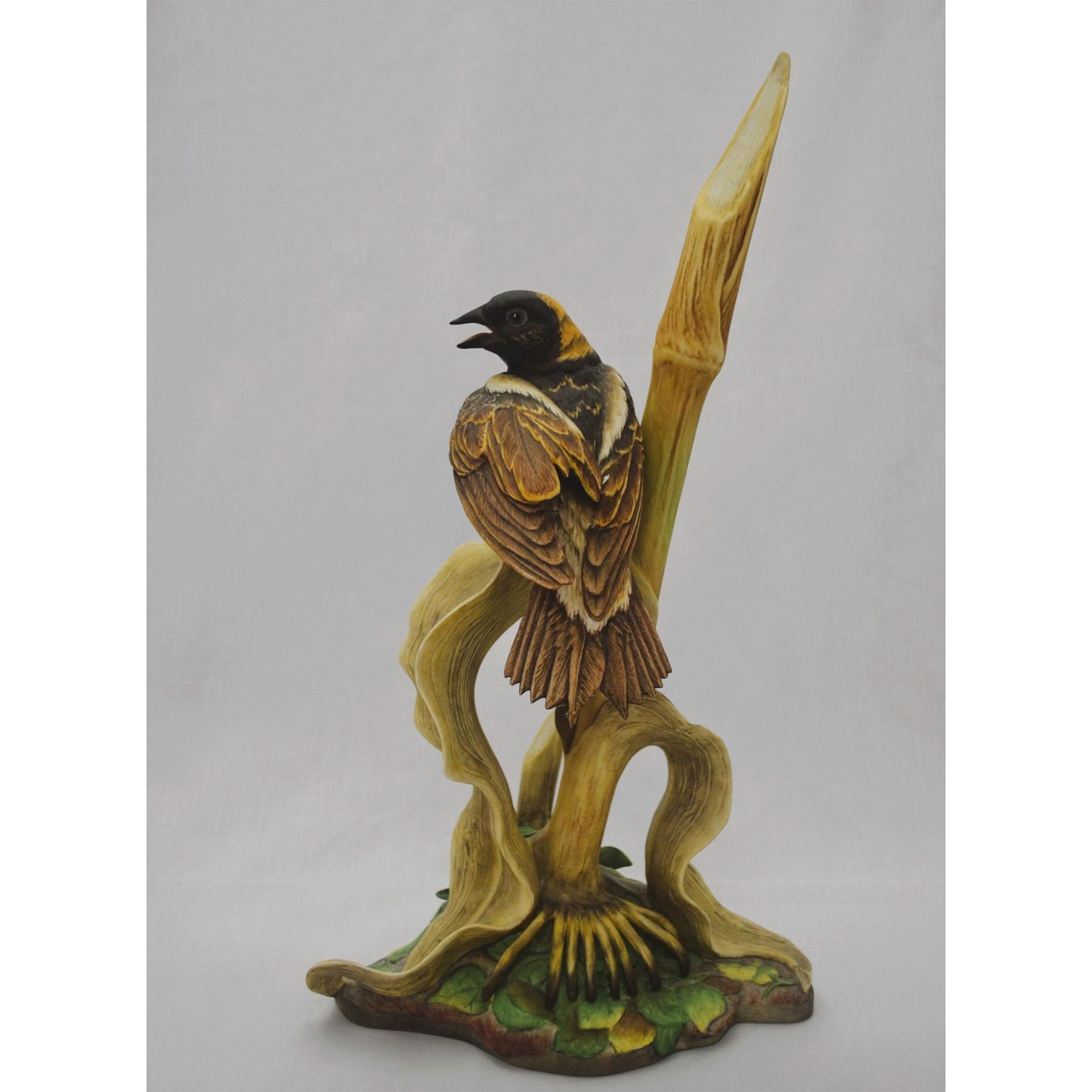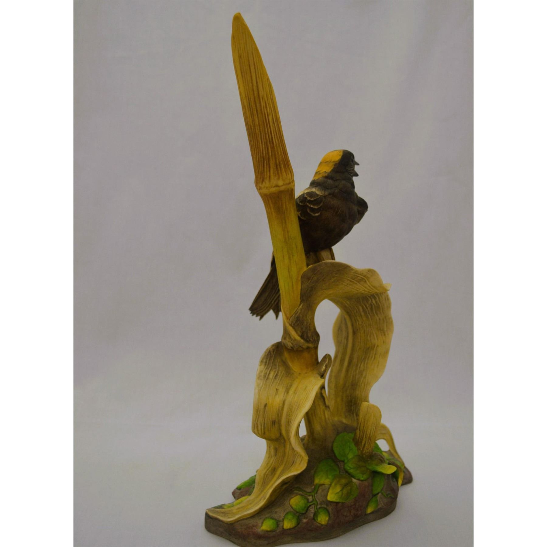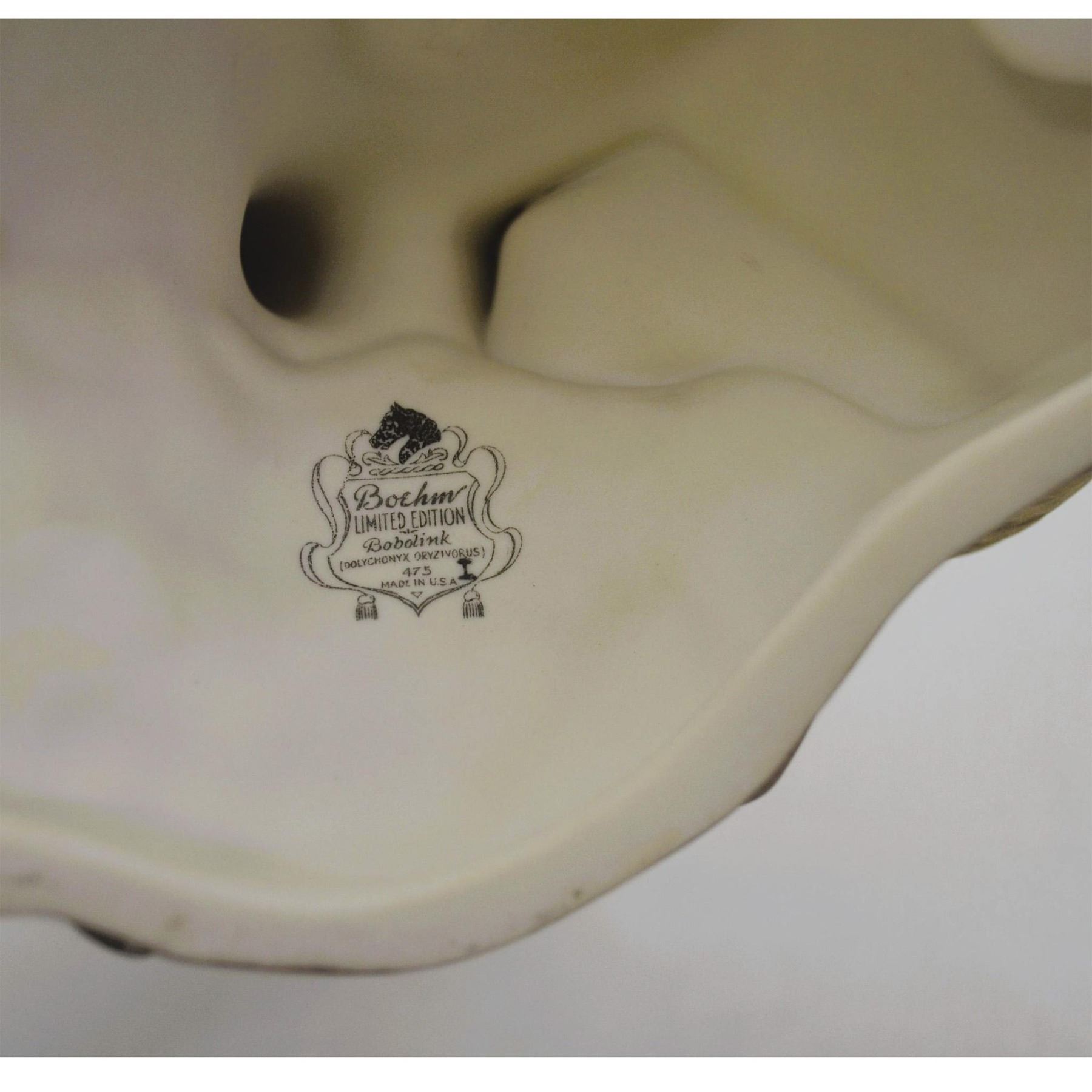 Bisque Porcelain Decorated, hand created, hand painted by the Boehm Studio in the USA. Hallmark: 475. Introduced in 1964, a sold out edition by 1971 . Early introduction, hand created and painted by Edward M. Boehm and Artists of the E.M. Boehm Studios in Trenton, NJ. Superior quality of craftsmanship, authentic detail and realism was achieved by Ed Boehm in the creation of the Bobolink Bird Sculpture. Authentic Boehm Backstamp on the underside. From the Archival Collection of Re Vann Galleries, G.Reasoner, Owner.