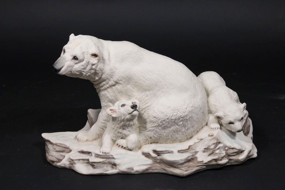 Boehm Porcelain Grouping, Polar Bear with Cubs