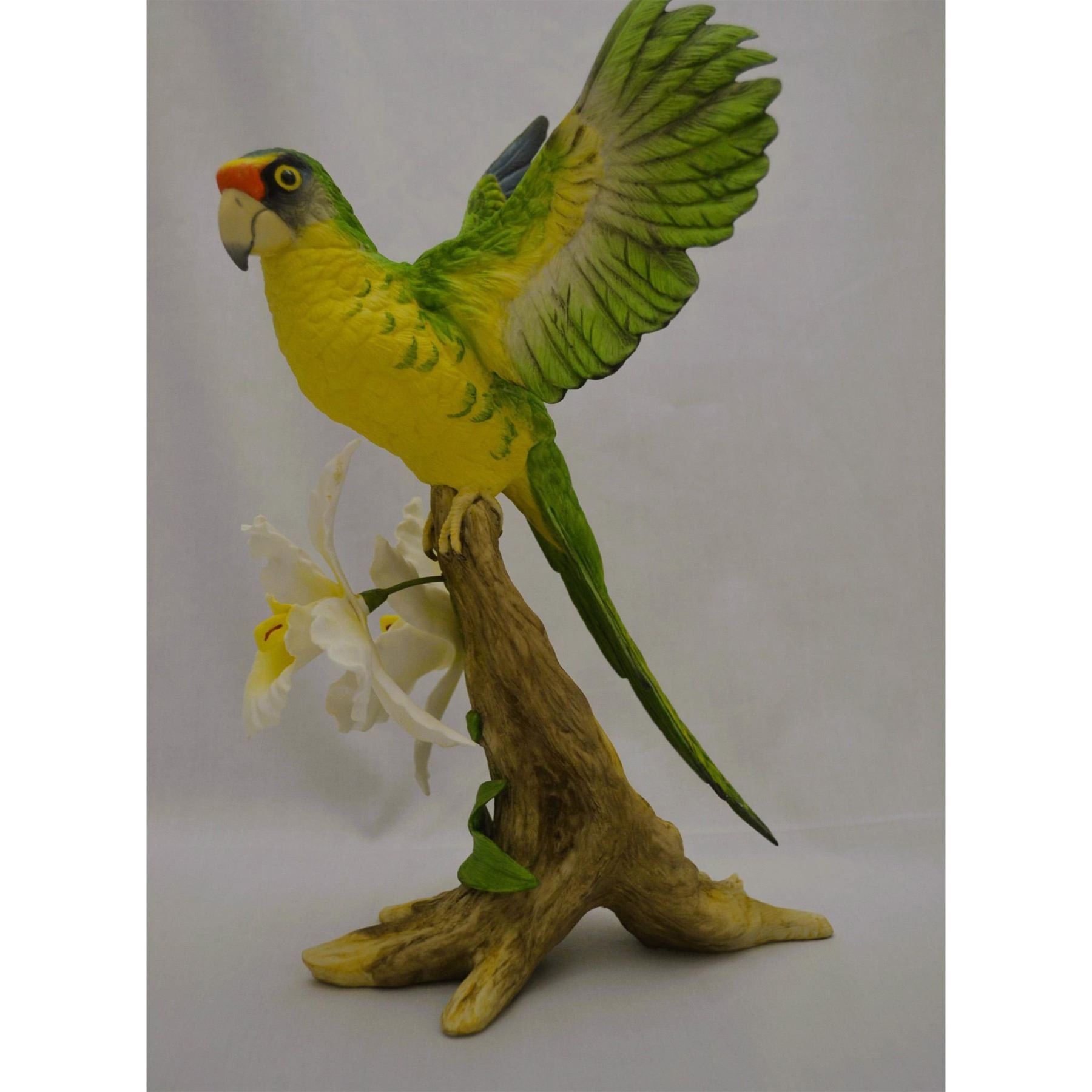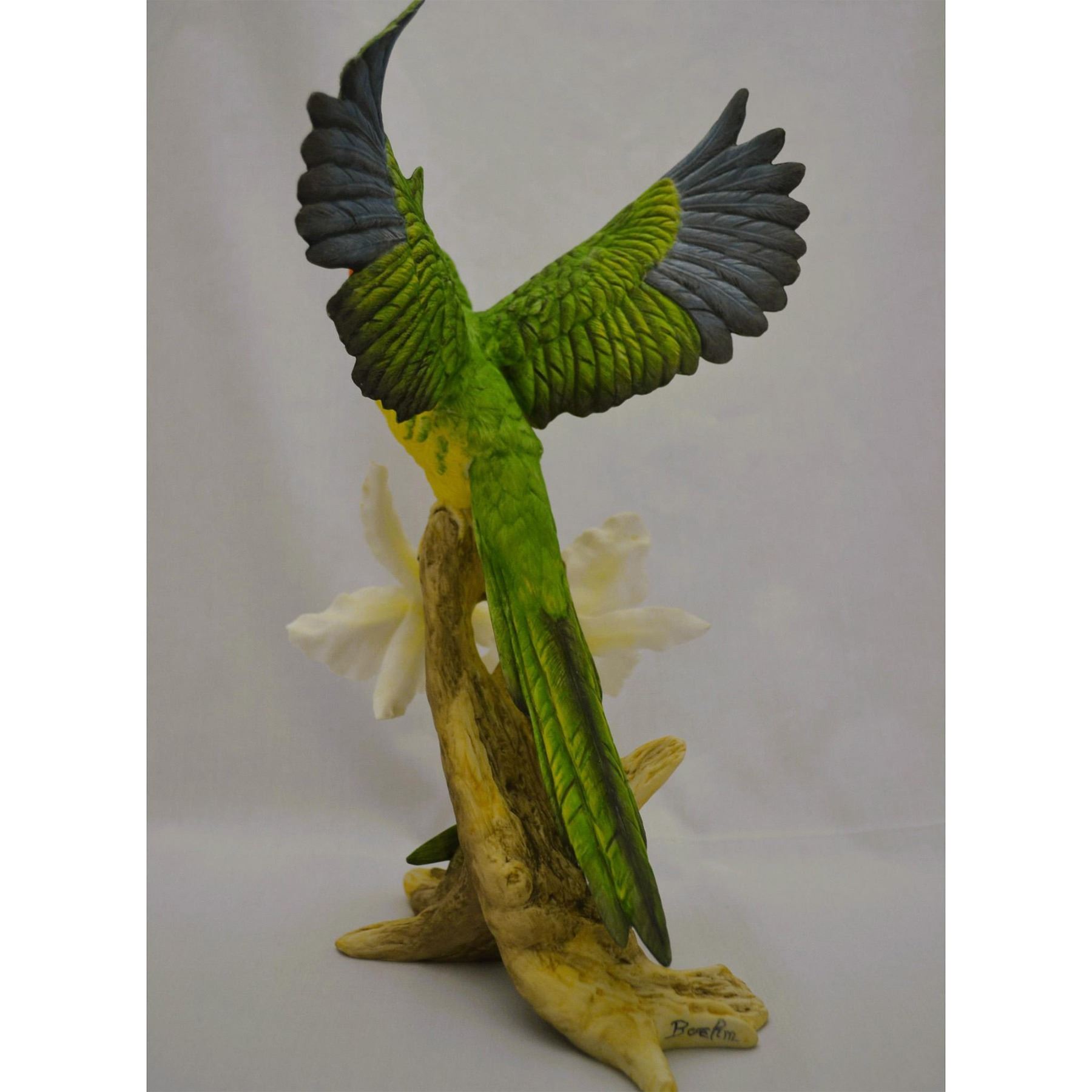 Boehm Porcelain Orange-fronted Parakeet With White Orchids,1982