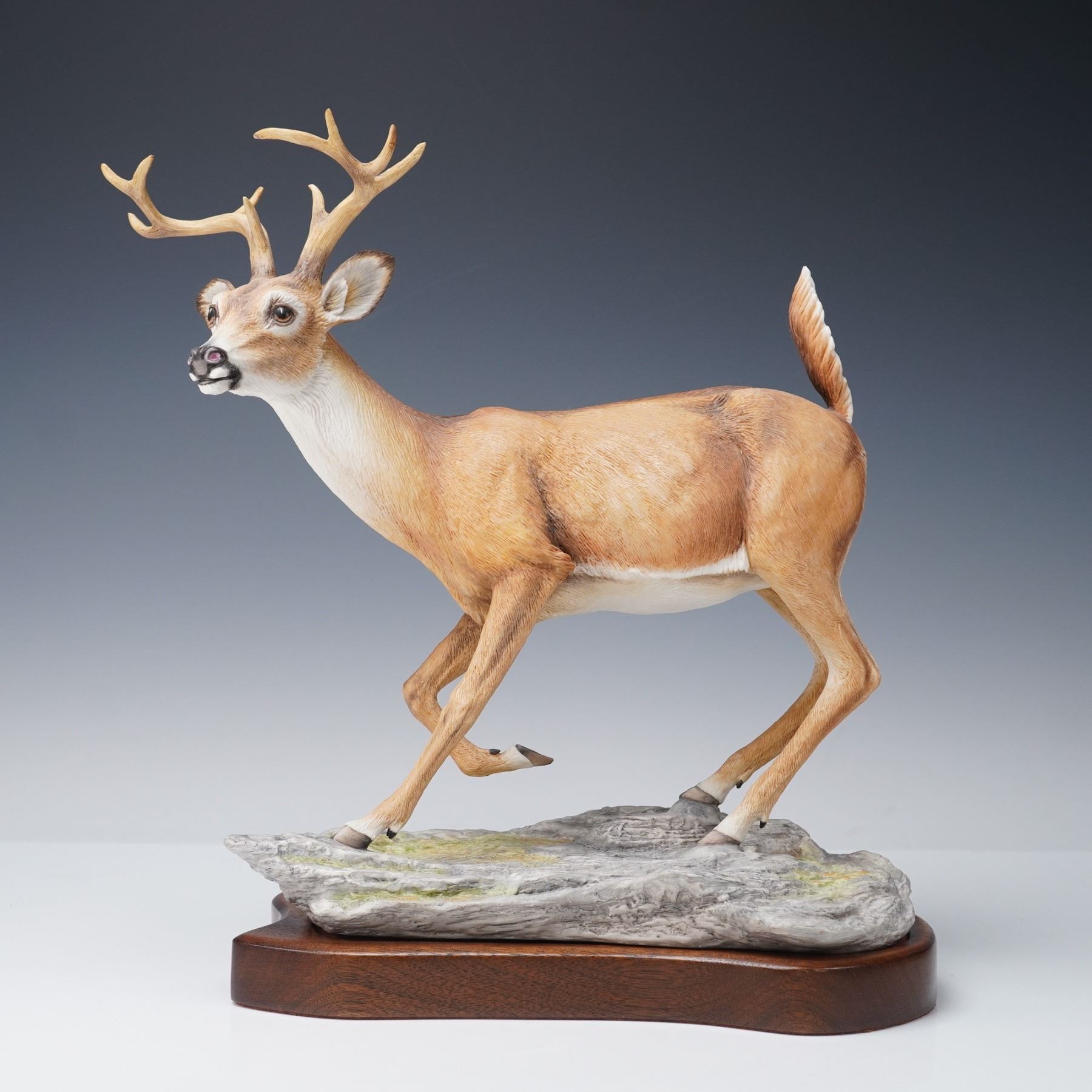 Boehm Porcelain White Tailed Buck Sculpture, Limited Issue + Base
