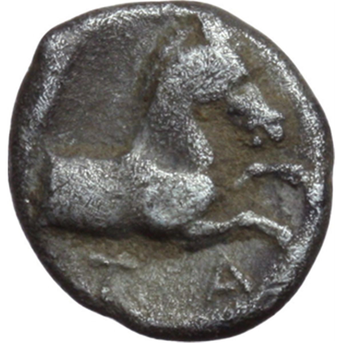 Mondo Greco. Grecia Continentale. Boeotia, Tanagra. Obolo, 387-374 a.C. D/ Scudo beota. R/ Protome di cavallo scalpitante a destra. Sotto, TA. SNG Cop.231. AG. g. 0.89 mm. 8.50 BB.