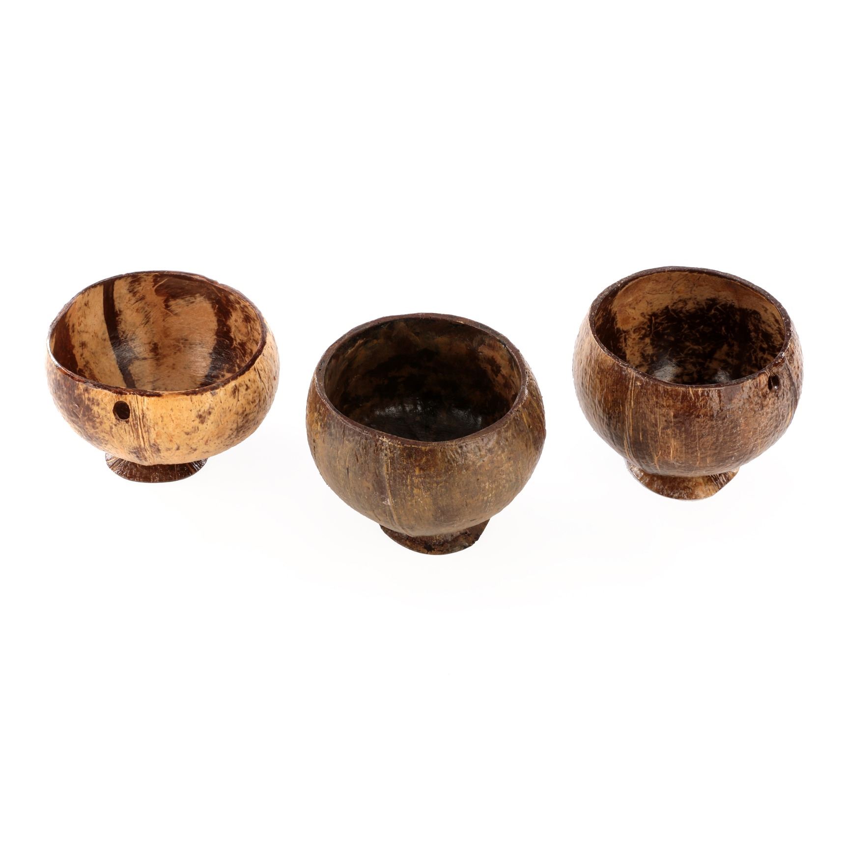 121. "Bofuki Nepoo" tea cups from Dirk Gently's Holistic Detective Agency. (BBC America, 2016-2017) Collection of (3) prop cups expertly studio finished and painted to appear as hollowed out gourds. Including (2) constructed of cast resin and (1) stunt version constructed of cast hard rubber. Used by Wakti Wapnasi and the Bofuki Nepoo in the forests of Wendimoor. Exhibiting light surface wear. In very good condition. Starting Bid: $25