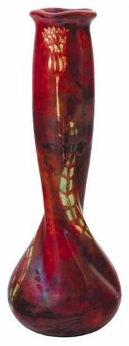 <div align=justify>Formaterv: Sikorski Tádé Porcelánfajansz, opak és transzparens, márványosan összefolyó eozinmázak. Fazonszám: 5997 Magasság: 29,5 cm Jelzés: domború körpecsét