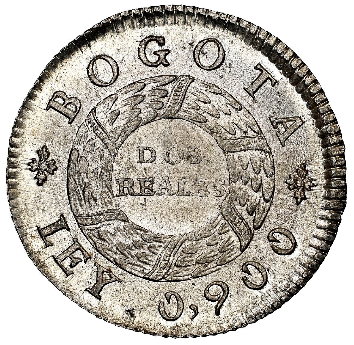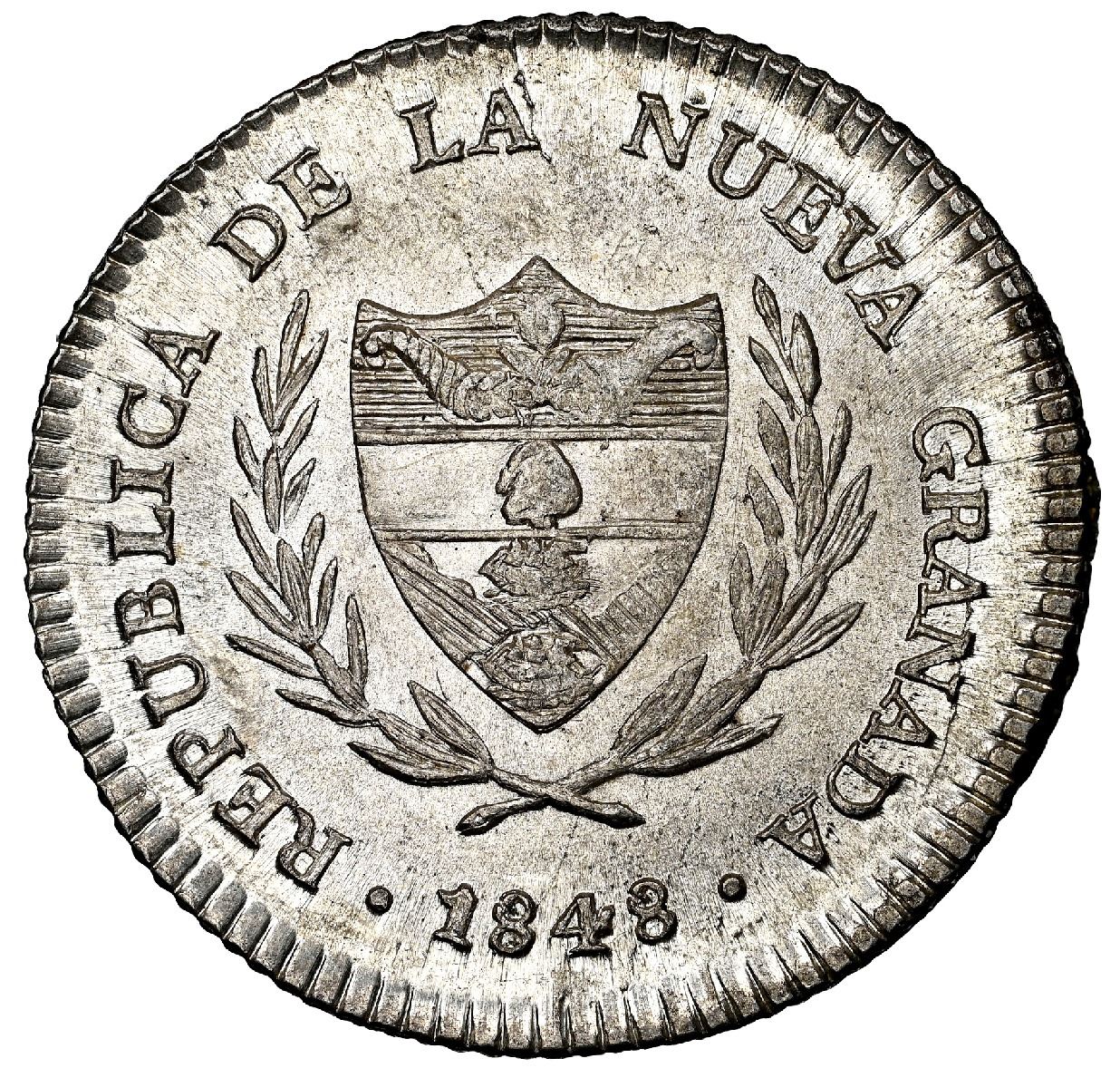 Bogota, Colombia, 2 reales, 1848, NGC MS 65+, finest known in NGC census.