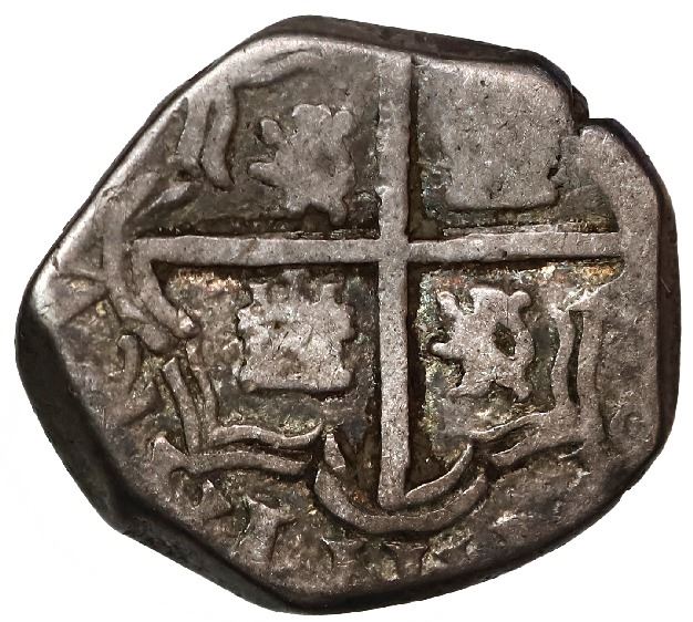 Bogota, Colombia, cob 1 real, Philip IV, assayer P below denomination I to right, mintmark not visib