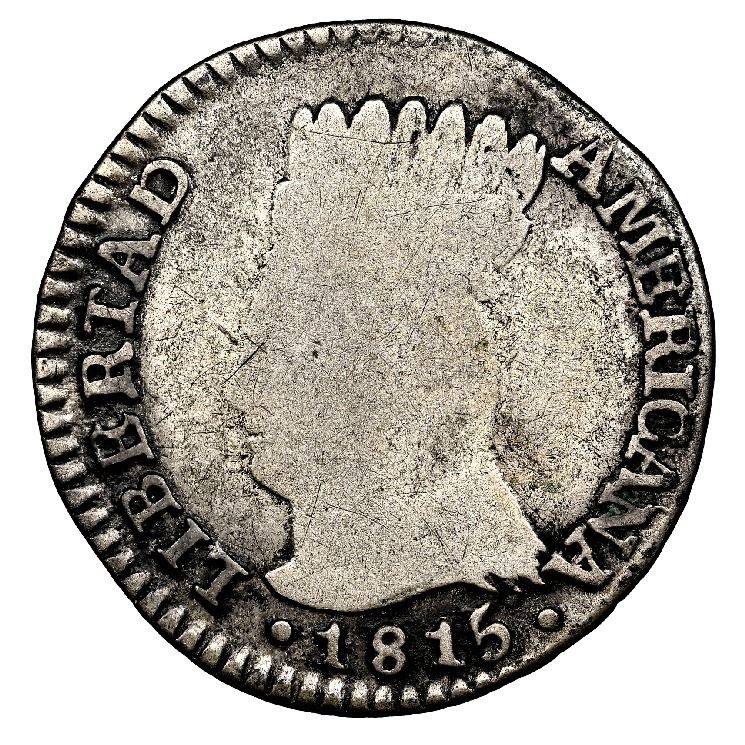 Bogota (Cundinamarca), Colombia, 1 real, 1815 J.F, LIBERTAD AMERICANA, legend error NVEBA, extremely