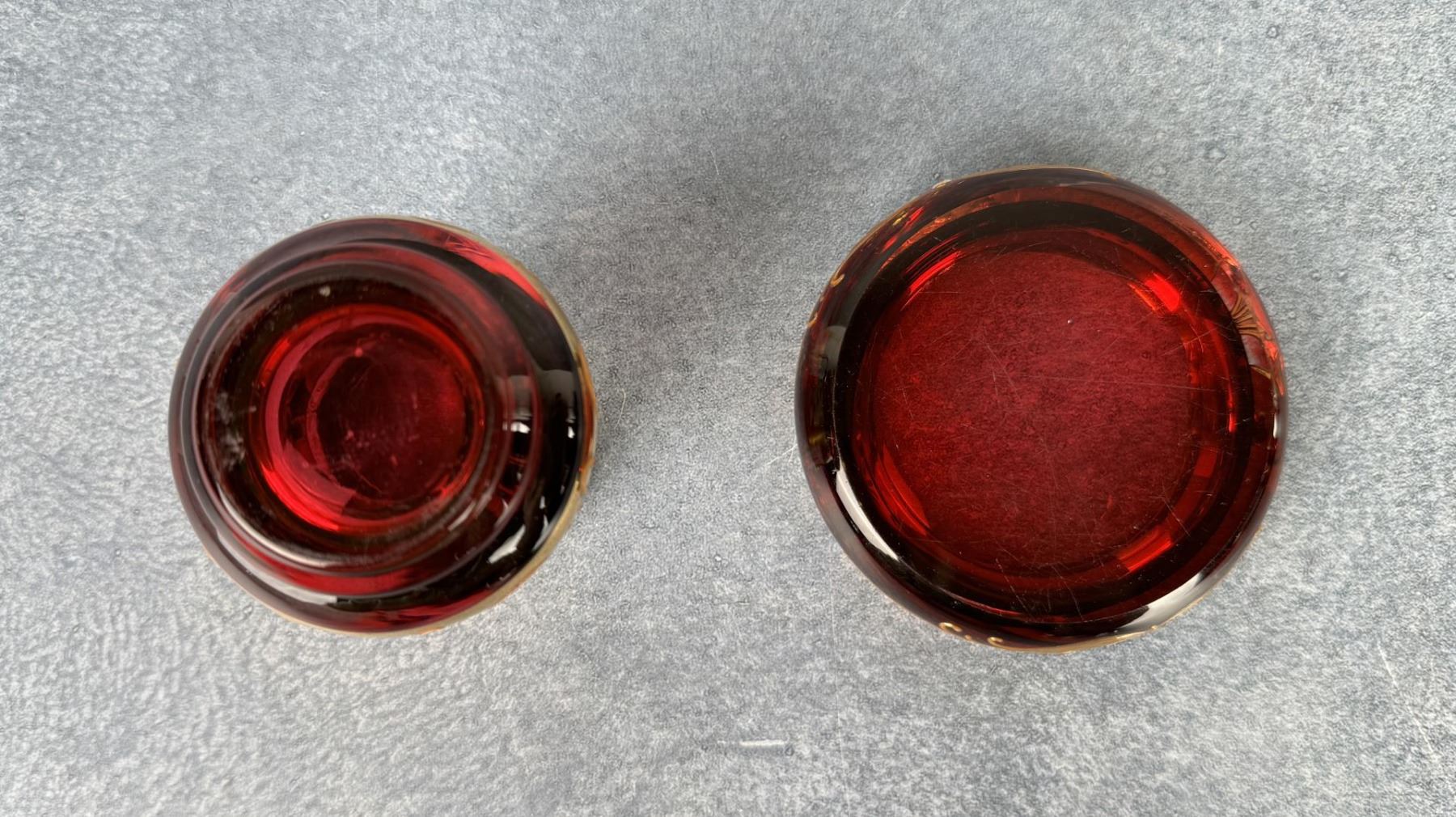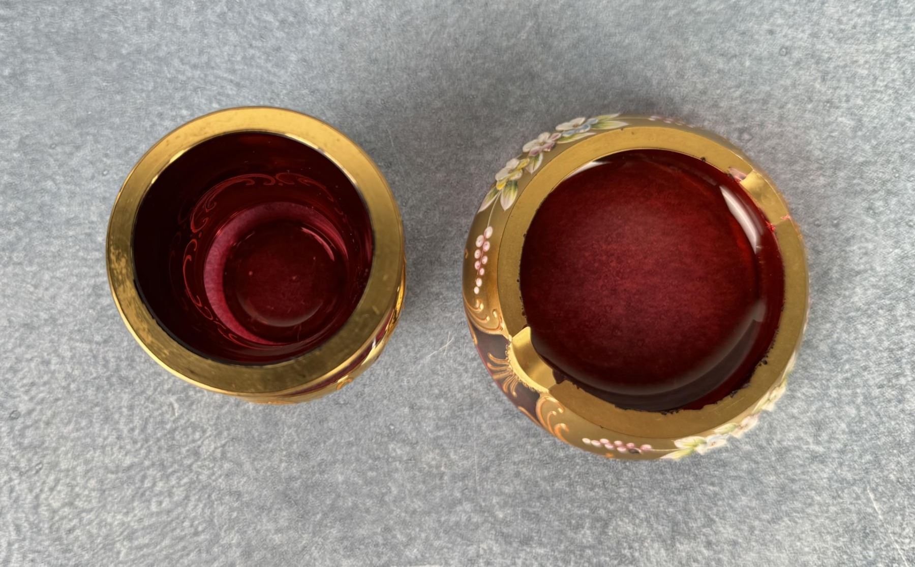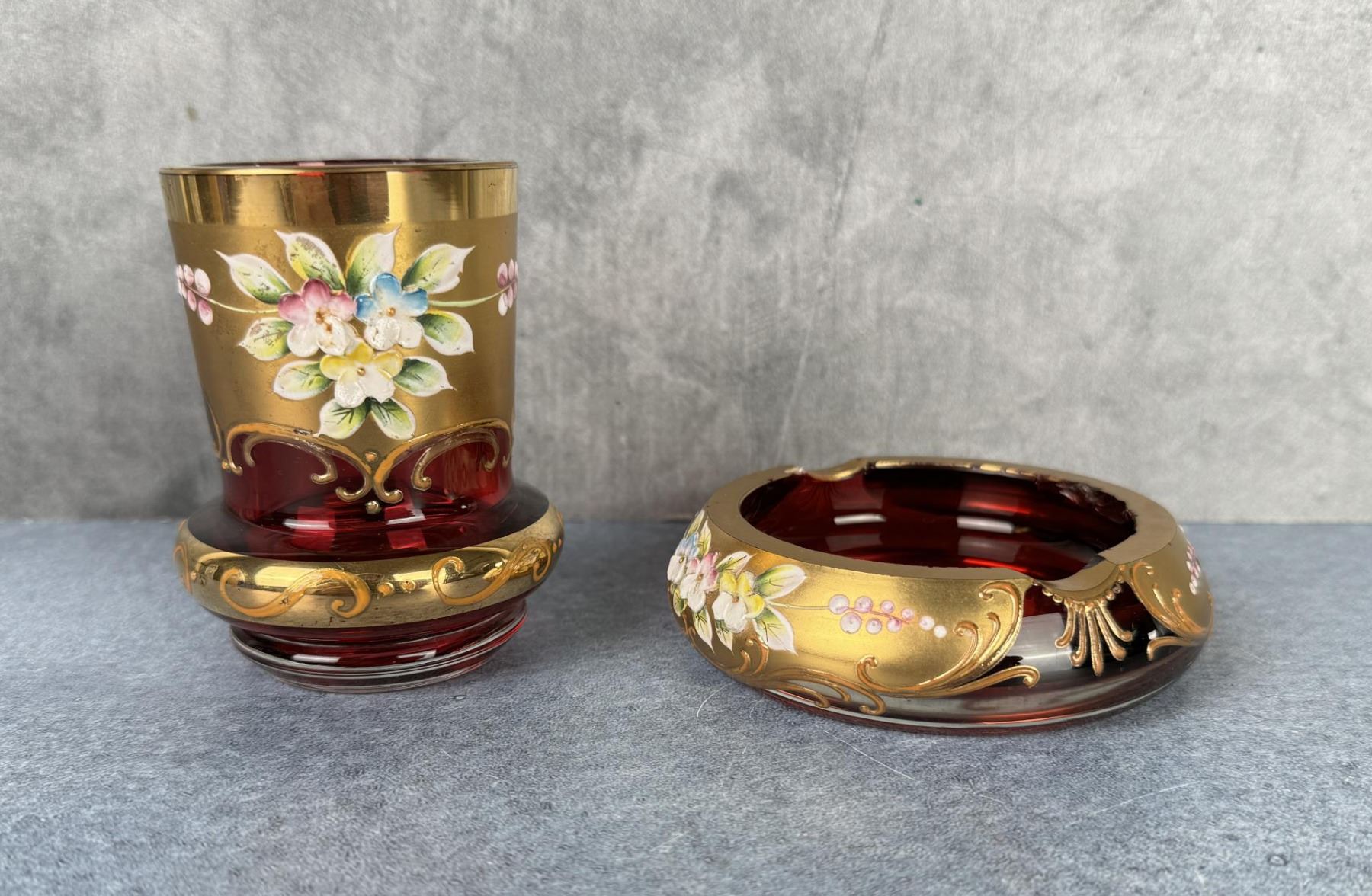 Two pieces. Cigarette holder is 3 1/2" tall by 2 3/4" in diameter and ashtray is 1" tall by 3 3/4" in diameter.