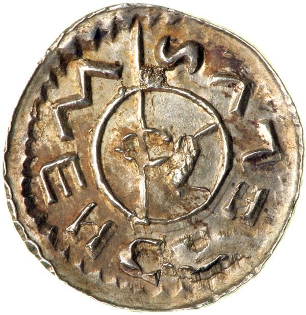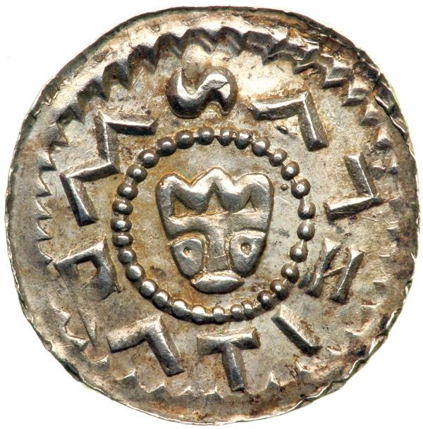 Bohemia. Denar, ND. Cach-348. Weight 0.66 grams. Prague mint. Wratislaus II, 1061-1092. Obverse: Facing crowned head. Legend: WRATIZLVS. Reverse: Hand holding scepter. Legend: WENCEZLVS. Choice About Uncirculated.