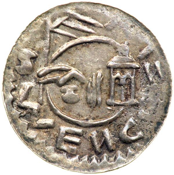 Bohemia. Denar, ND. Cach-354. Weight 0.79 grams. Prague mint. Wratislaus II, 1061-1092. Obverse: Crowned bust right. Legend: WRATIZLVS. Reverse: Hand holding a scepter and banner to left and a church to the right. Legend: WENCEZLVS. Sharp original lustrous example. Choice About Uncirculated.