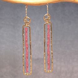 Metal: SilverLong hammered rectangles with pink ruby, about 2" long. Available in either 14K gold-filled, rose gold-filled, or sterling silver. All jewelry is entirely handmade in our studio in New York.