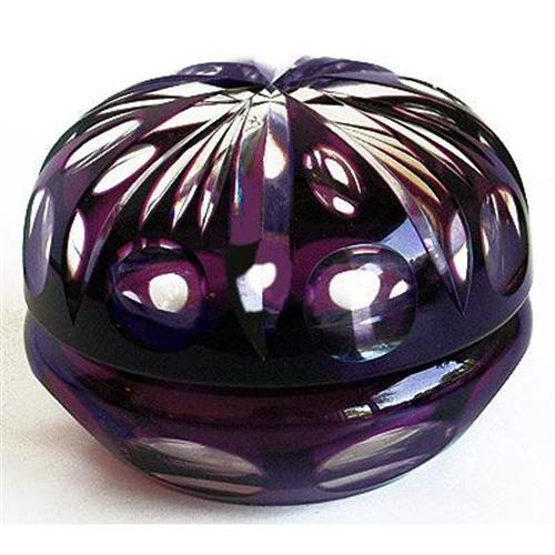 <tr><td>Title:Bohemian Cut to Clear Amethyst Glass Powder Jar</td></tr>