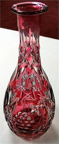 Bohemian Czech Ruby Cut to Clear Decanter in good condition. Not signed. Stands 11 1/8" tall. No stopper