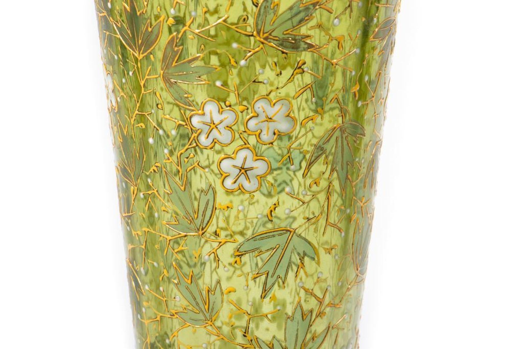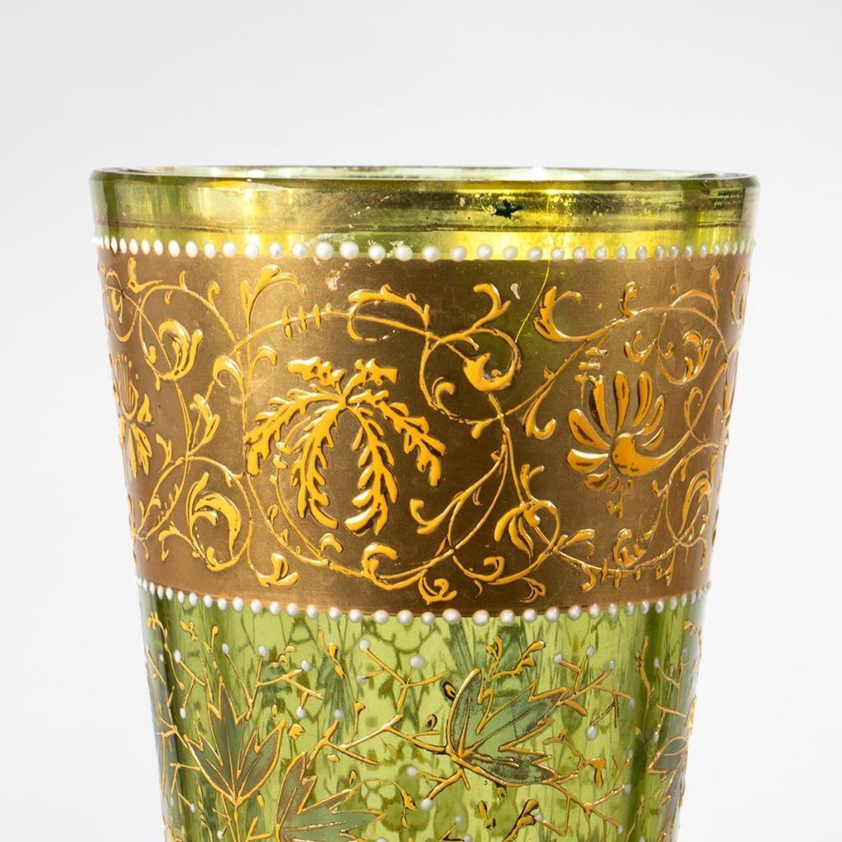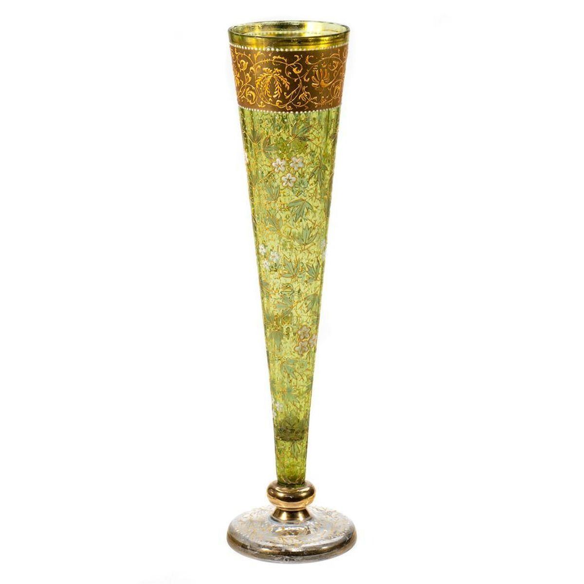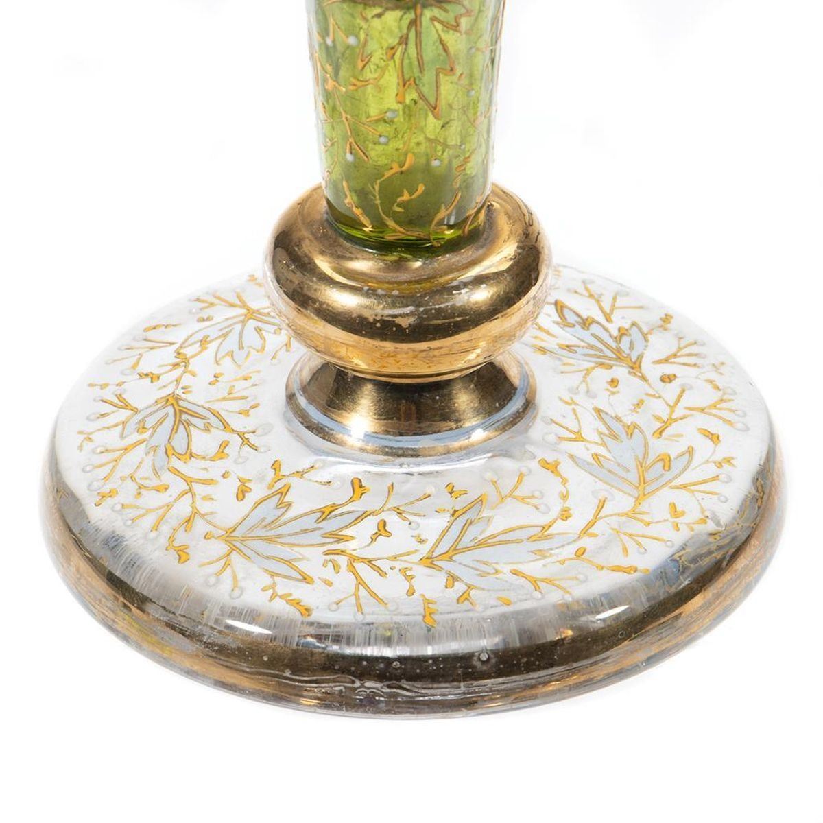 Overall with gilt and enamel foliate decoration. 17in. H. Condition: Repaired break at center of stem.