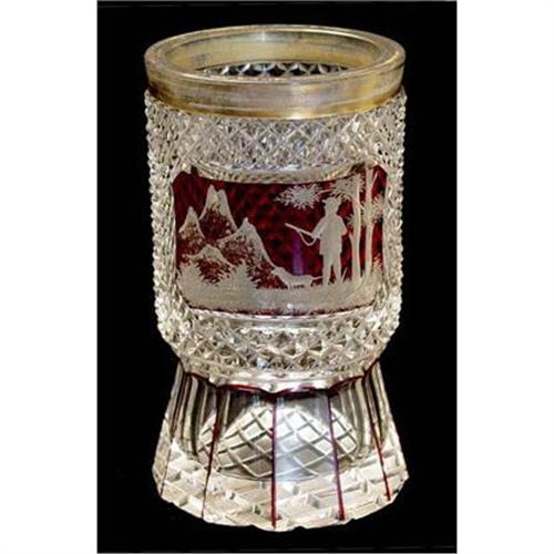 <tr><td>Title: Bohemian Ruby Goblet with Hunting Scene</td></tr>