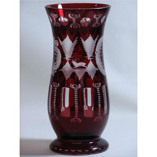 Bohemian Ruby Red Cut to Clear Vase, 10 1/4 H x 4 3/4 D. Condition: no damage noted.
