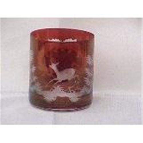 This is A beautiful Ruby stained glass from Bohemia/Czech etch with A Deer and Leaves.