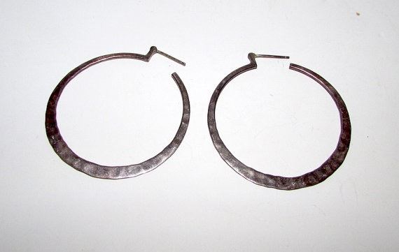 For your consideration is a pair of these fabulous, vintage large 2" sterling silver hand tooled statement hoop pierced earrings in wonderful vintage condition. Unmarked and have been tested for silver content. Fab boho chic pieces. Spectacular statement pieces to add to any jewelry collection!