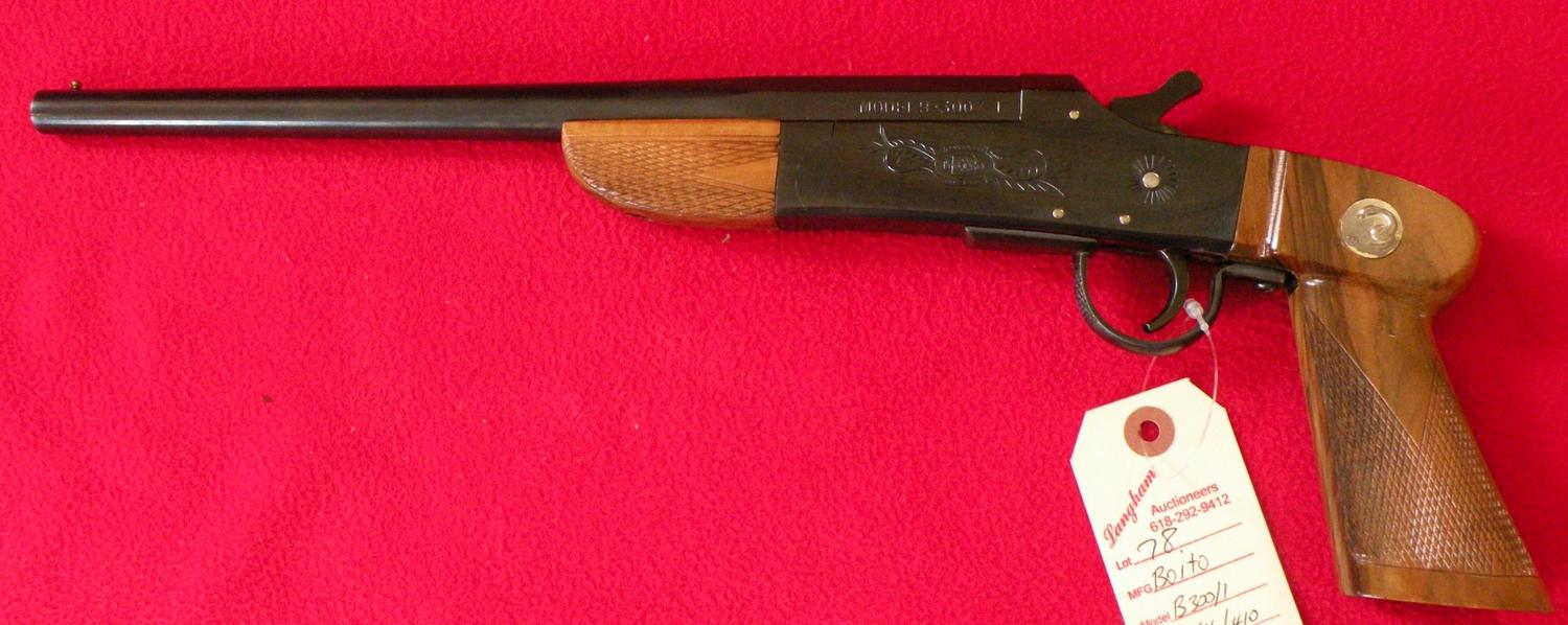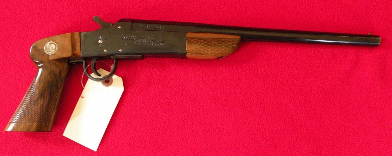 12" Rifled barrel, .44 cal/ 410, used by railroad workers as a snake gun, single shot, SN 1358