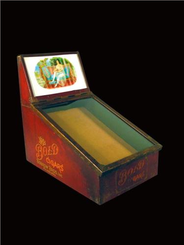 Bold Cigar Store Display Case, Bobrow Bros. Philadelphia, PA. Tin and glass, top label has been replaced, fair to good condition. 9 1/2 X 14 1/2 X 16 inches.