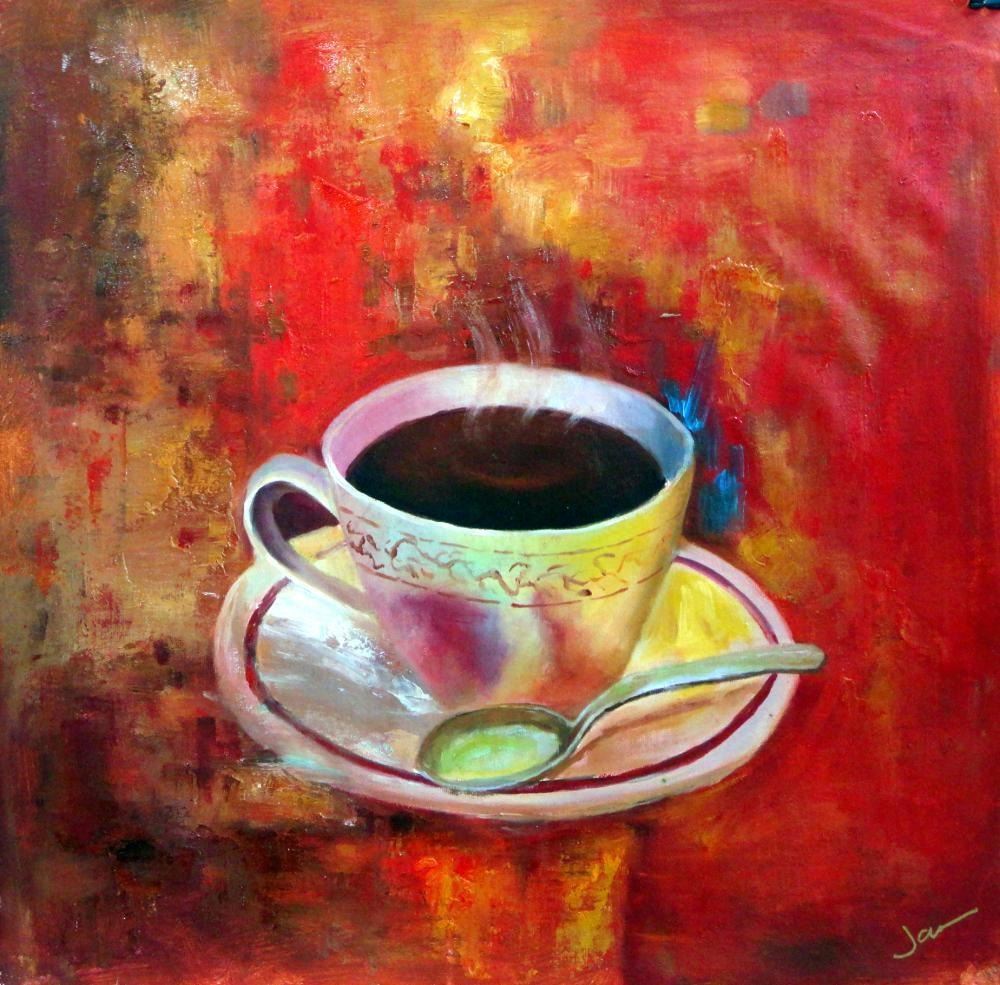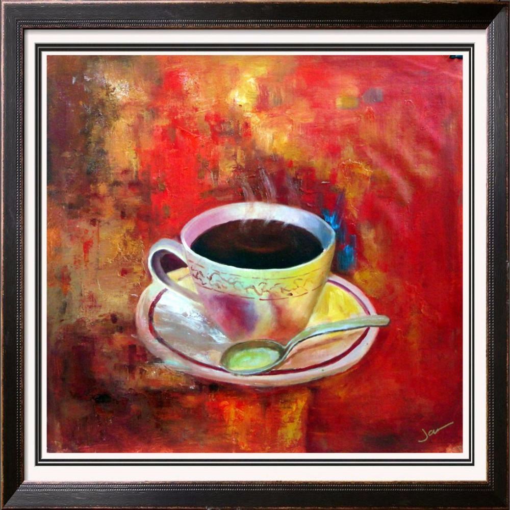 Janier | Title of Art: Coffee Brew II | Medium: Hand Signed Original Acrylic on Canvas | Edition #: Original | Unframed Size: 22 x 22 | Framed Size: Offered Unframed. Framing presentation if shown is for concept only. If you need assistance with custom framing, call the experts at ArtForSale