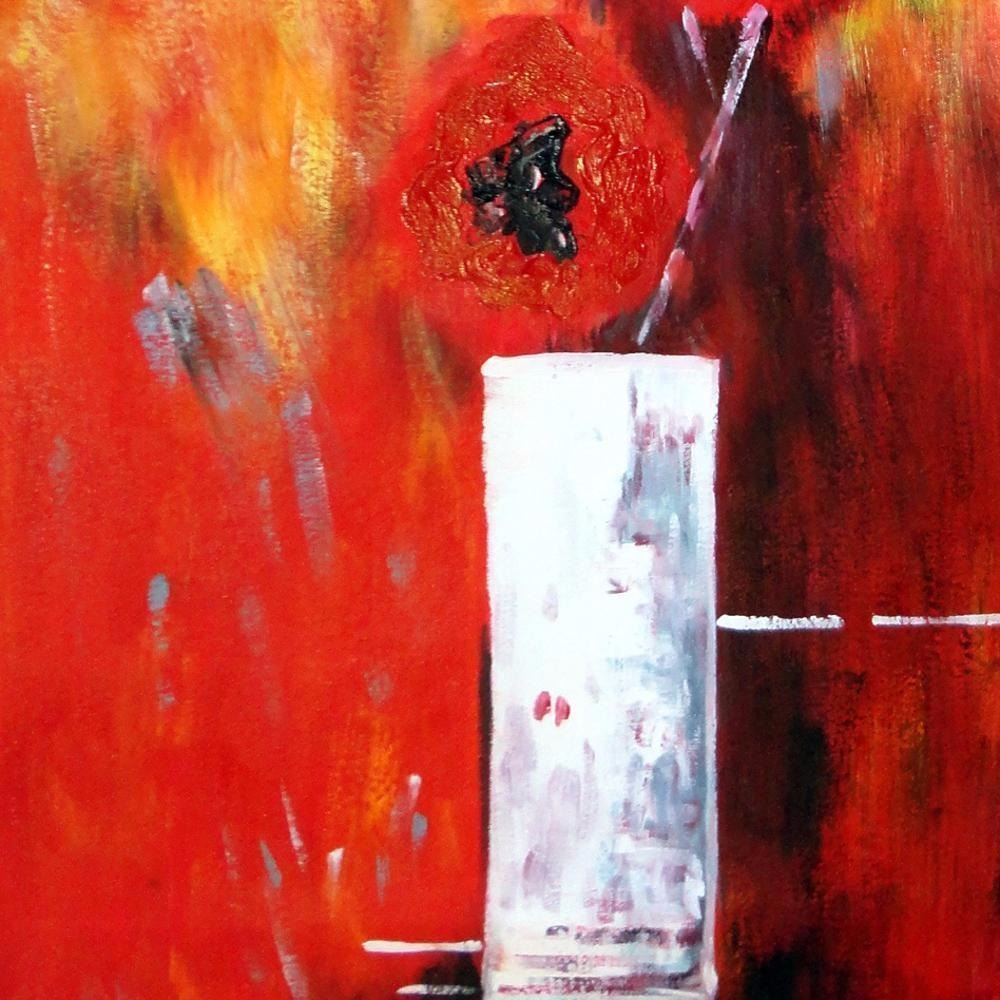Janier | Title of Art: Floral in Vase III | Medium: Hand Signed Original Acrylic on Canvas | Edition #: Original | Unframed Size: 50 x 20 | Framed Size: Offered Unframed. Framing presentation if shown is for concept only. If you need assistance with custom framing, call the experts at ArtForSale