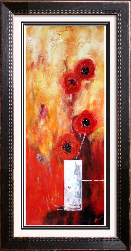 Janier | Title of Art: Floral in Vase III | Medium: Hand Signed Original Acrylic on Canvas | Edition #: Original | Unframed Size: 50 x 20 | Framed Size: Offered Unframed. Framing presentation if shown is for concept only. If you need assistance with custom framing, call the experts at ArtForSale