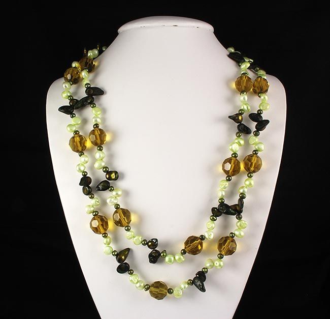 Bold Round Crystal with Freshwater Pearl Long Necklace **|**|** 842.50CARAT Handknoted Multifaceted Round Crystal with Freshwater Pearl Long Necklace ; MSRP: $0