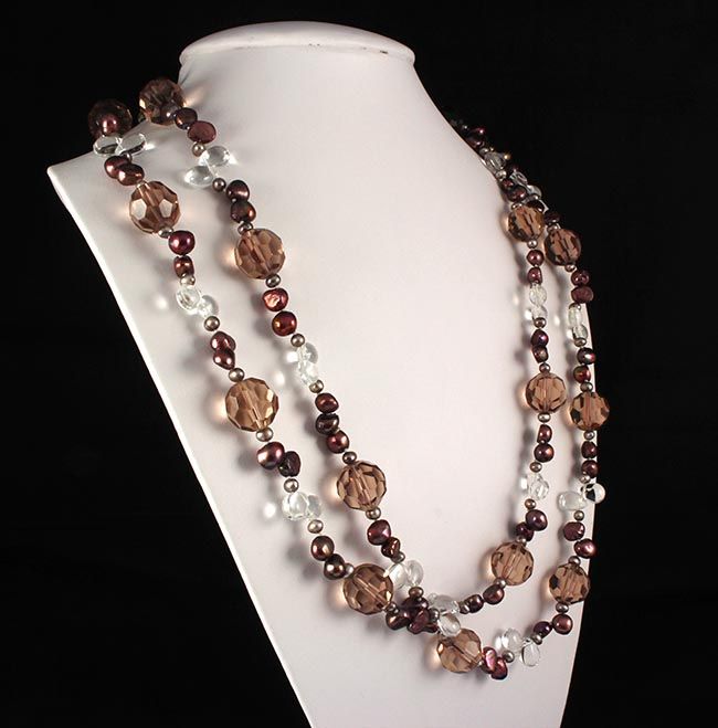Bold Round Crystal with Freshwater Pearl Long Necklace **|**|** 854.00CARAT Handknotted Multifaceted Round Crystal, White Quartz and Freshwater Pearl Necklace ; MSRP: $0
