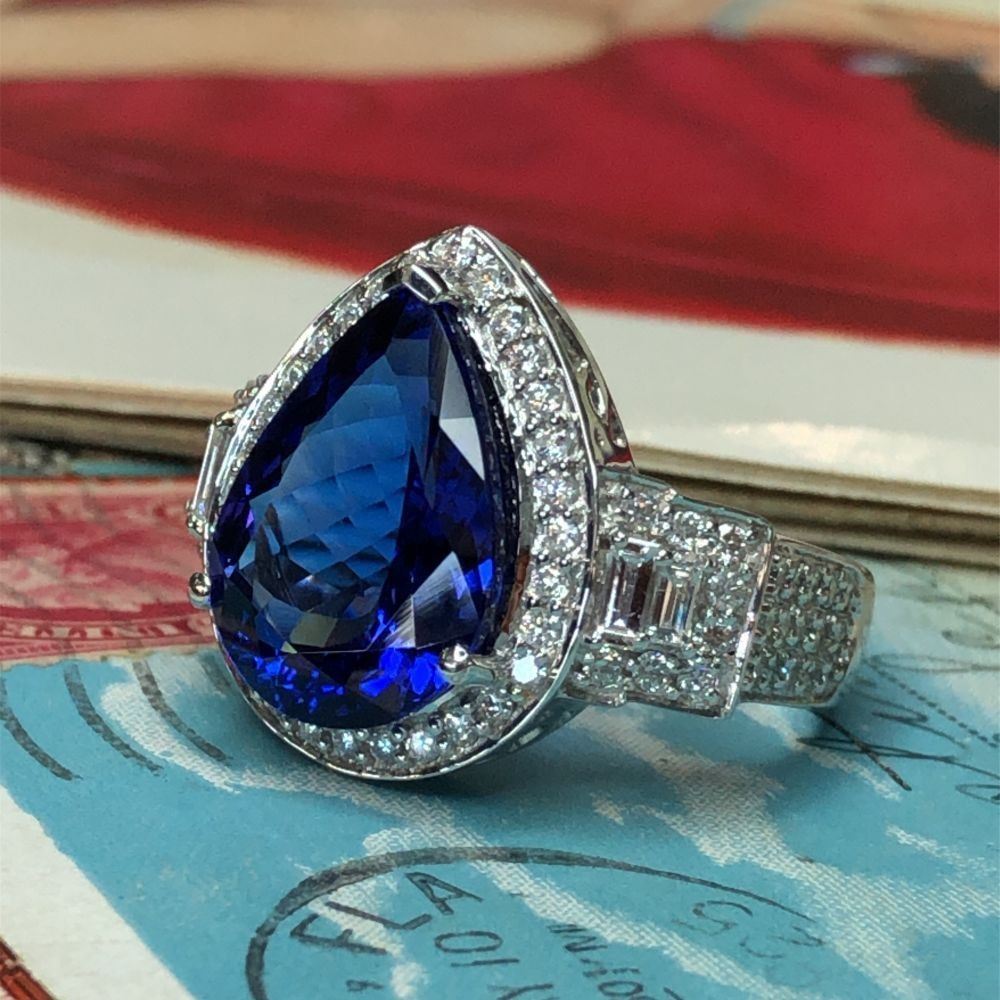 TITLE DESCRIPTION: Bold Tanzanite and Mixed-Cut Diamond Ring