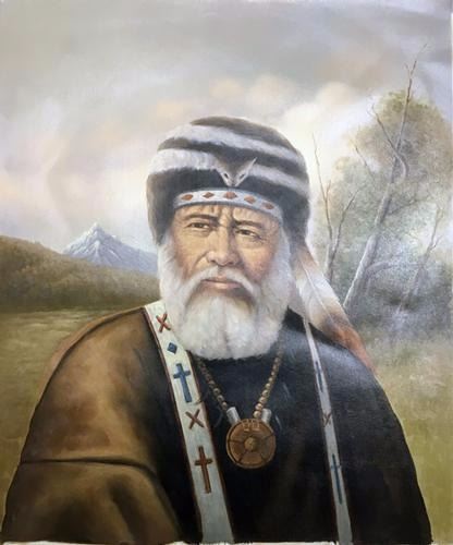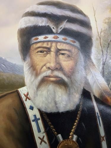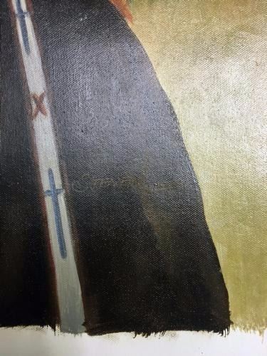 Very intriguing original oil on canvas. Subject of this painting is of an Indian priest. Signed by the artist Steven Lee lower right. Size: 27X23 inches.