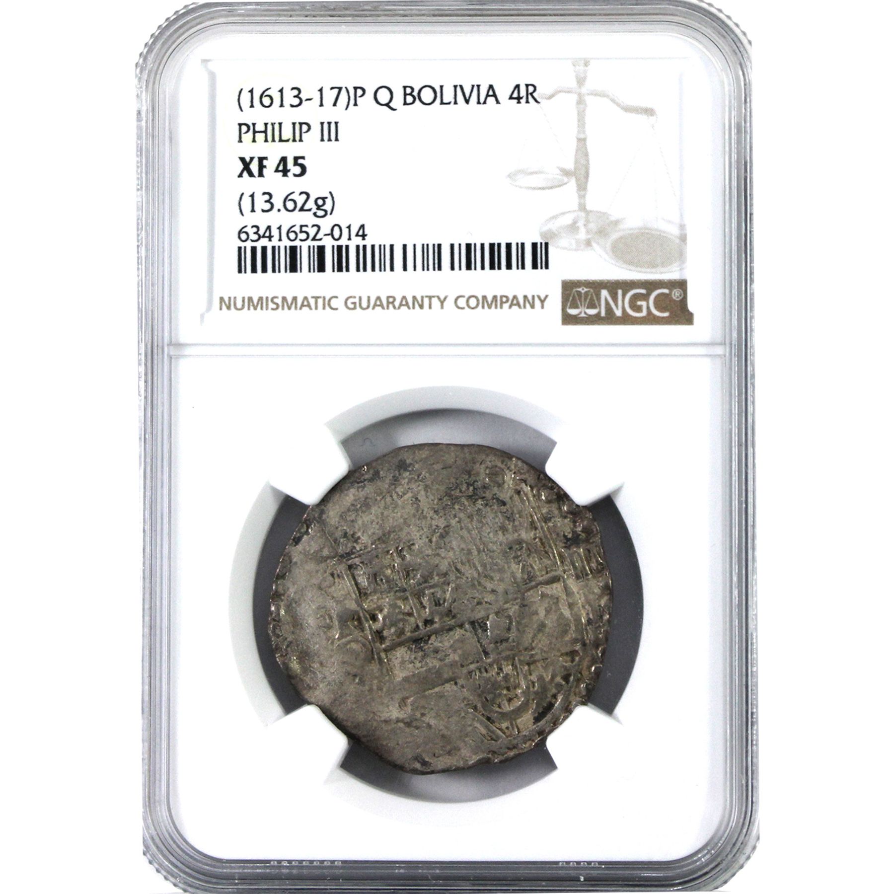 Bolivia 1613-17 P Q 4 Reales Phillip III NGC EF45. 13.62g
