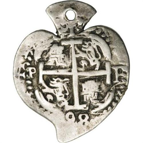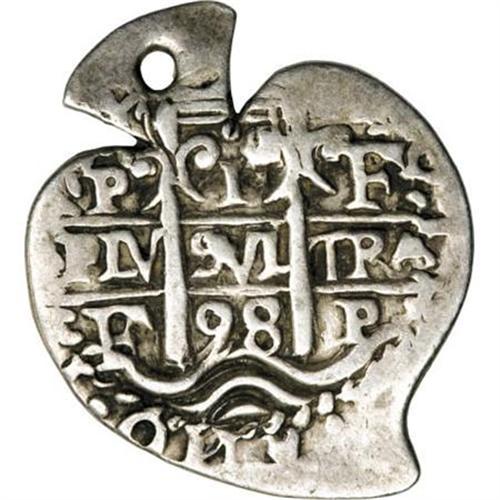 <B>Carlos II Heart-shaped cob 1 Real 1698P-F,</B></I> type of KM23, choice toned VF+, holed at the top, very attractive with a full second date, mintmark and assayer on the reverse. 4.37 grams (which is heavy for a 1 Real.) <BR><BR><b>Shipping:</b> Coins & Currency (<a target="_blank" href="http://www.heritageauctions.com/common/shipping.php">view shipping information</a>)