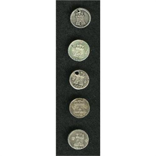 <B>Carlos IV group of 1/4 Reals,</B></I> KM82, four pieces featuring: 1796 VF holed, 1800 nicely toned XF and 1808, (2) VF edge cut and scratches, and sharp XF-AU, small attempted hole and light surface marks. Also included: Philippines 1/4 Real no date or mint, KM4, AU holed and three small attempted piercings. <B>Sold as is, no return lot.</B></I><BR><BR><b>Shipping:</b> Coins & Currency (<a target="_blank" href="http://www.heritageauctions.com/common/shipping.php">view shipping information</a>)
