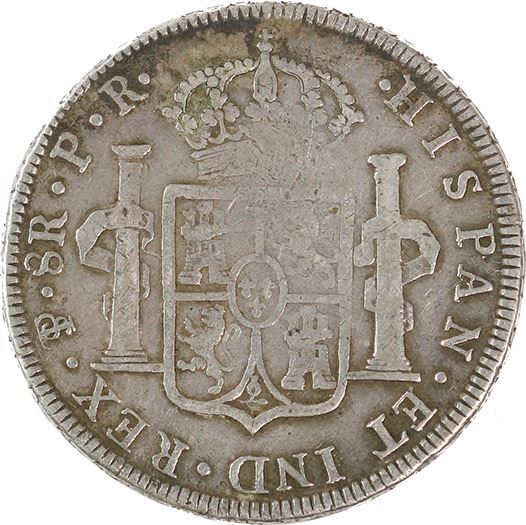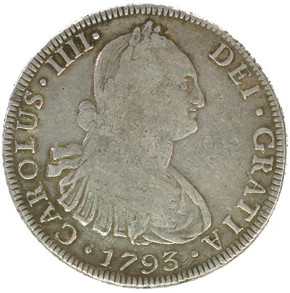Bolivia, Charles IIII, silver Eight Reales, Potosi mint, 1793 PTS P R, (KM.73), lightly toned, graded as almost fine reverse fine , forms part of the proclamation coinage of Australia