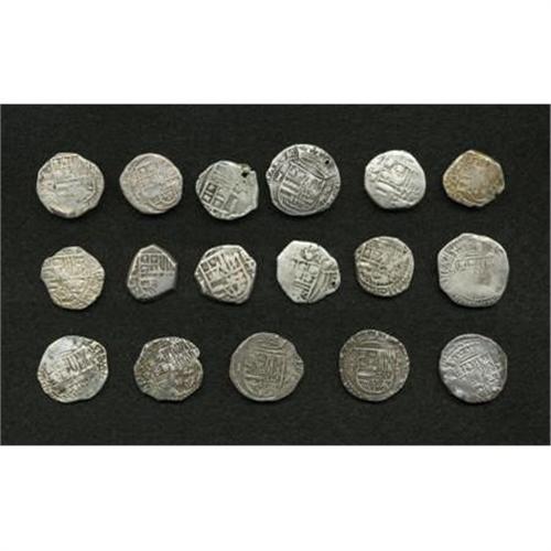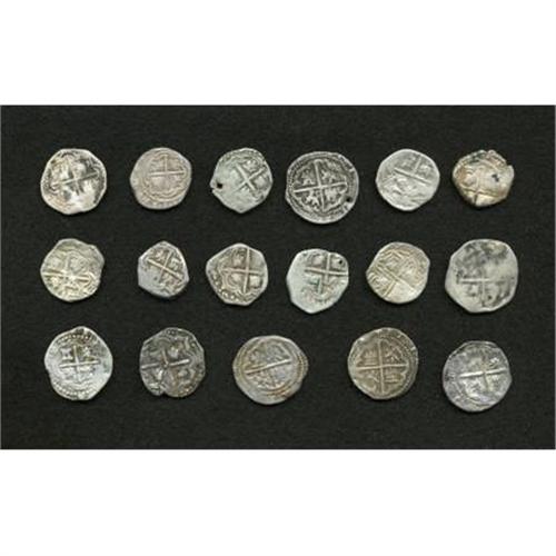 <B>Felipe II, III & IV cob 1 Real Assortment,</B></I> seventeen coins representing these three reigns, most with readable P mintmark and/or assayer's initial including five with assayer R. Grades are generally crude Fine to VF with only three holed and none sea salvaged. <B>Sold as is, no return lot.</B></I><BR><BR><b>Shipping:</b> Coins & Currency (<a target="_blank" href="http://www.heritageauctions.com/common/shipping.php">view shipping information</a>)